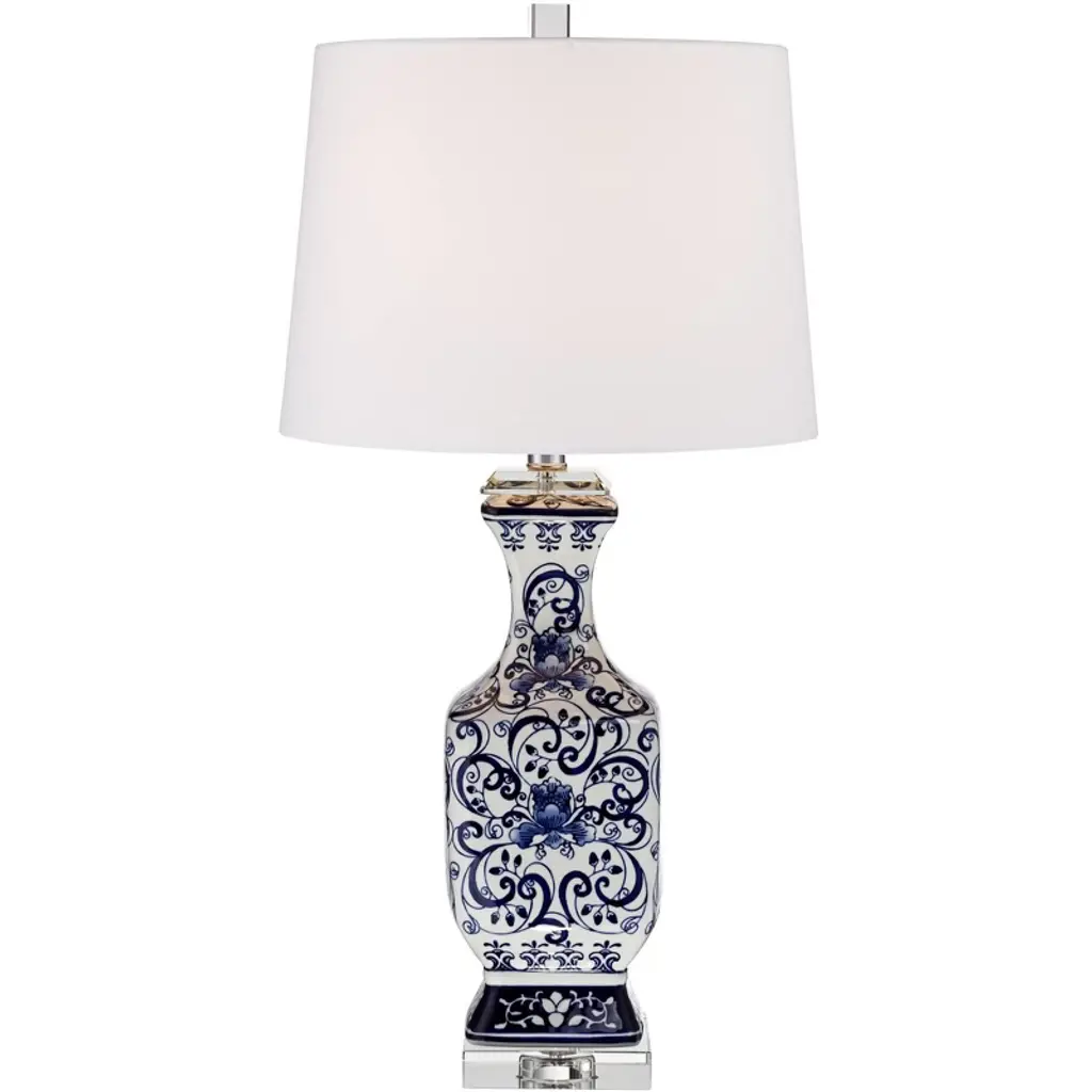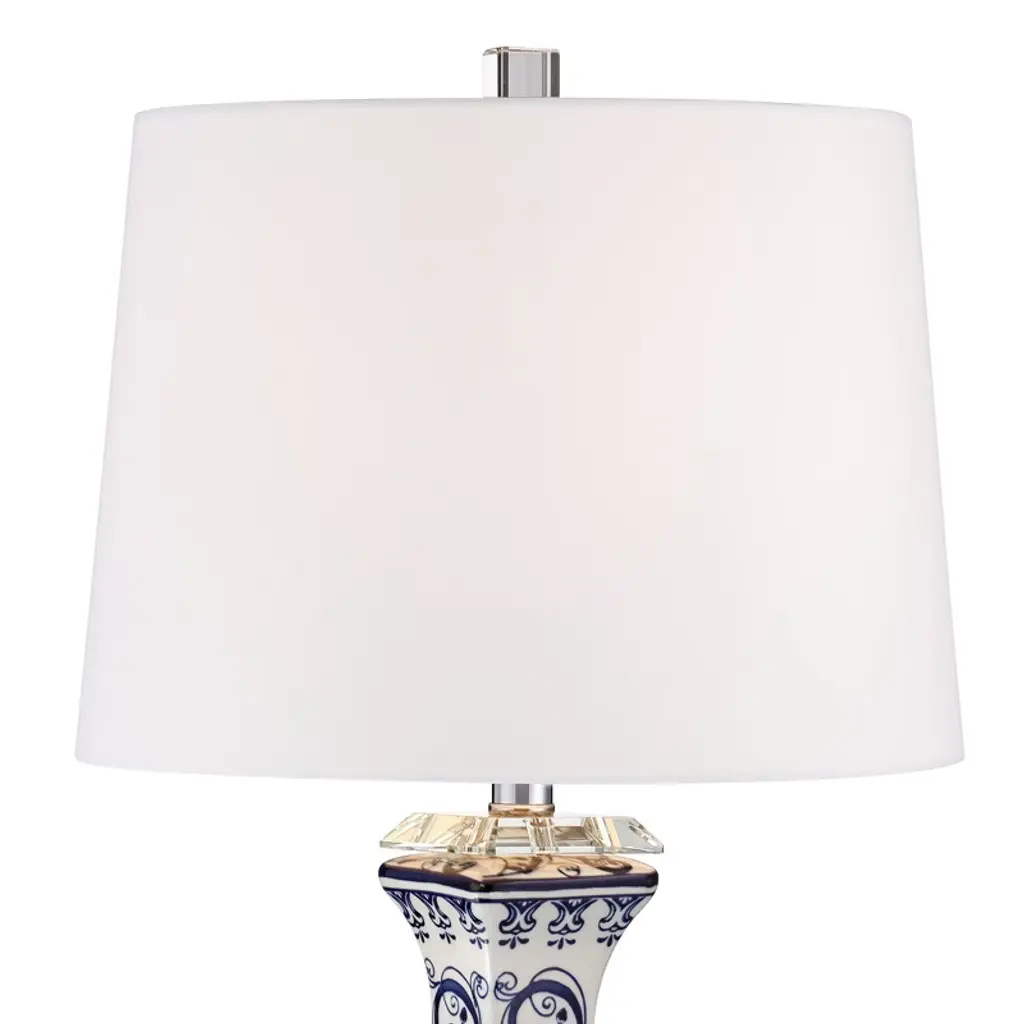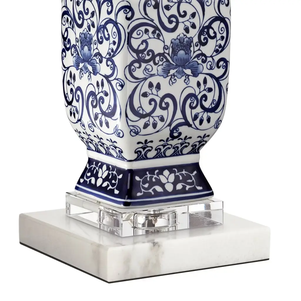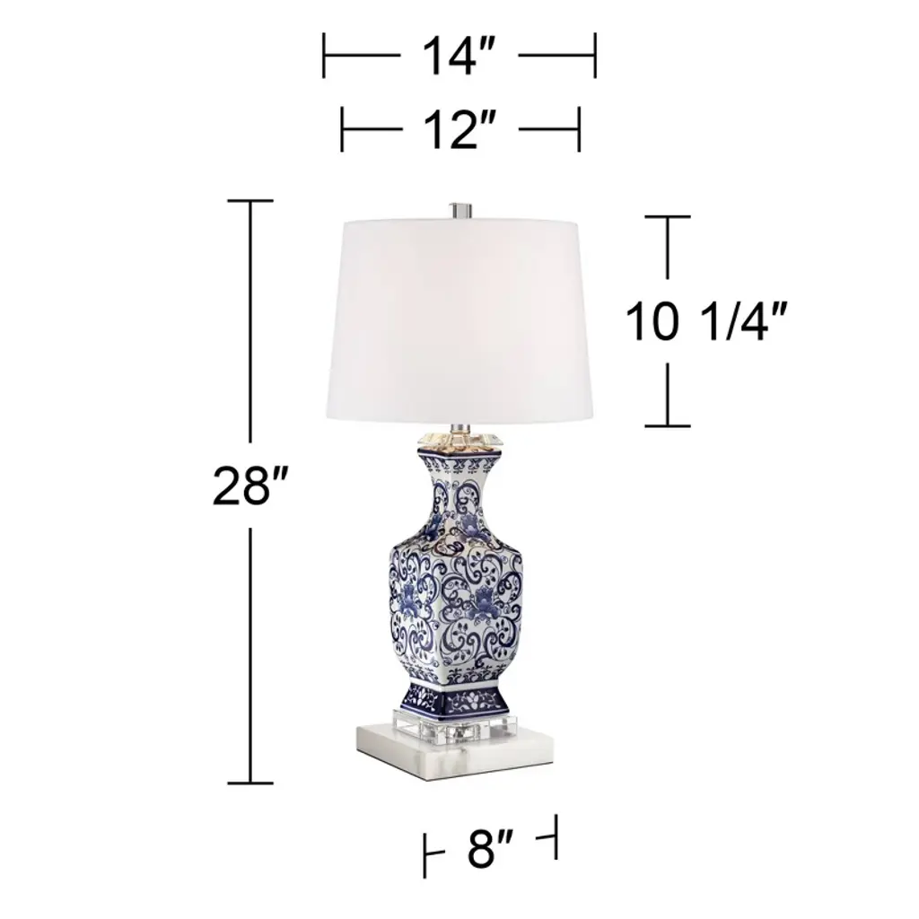 Barnes And Ivy Asian-inspired Table Lamp 28" Tall With Square White Marble Riser Blue White Drum Shade For Bedroom Living Room Nightstand
