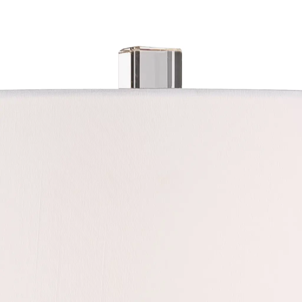 From the Barnes and Ivy brand, this sophisticated art glass table lamp with riser is a beautiful addition to a contemporary or transitional living space. This lamp boasts a handcrafted art glass body with a vase silhouette. Swirls of blue and gray create a compelling mix of hues that brings artistry to your decor. On top is a tapering drum shade that creates a clean, precise presentation. Comes with a square white marble riser that you can place under the lamp base to give the design extra height and style.