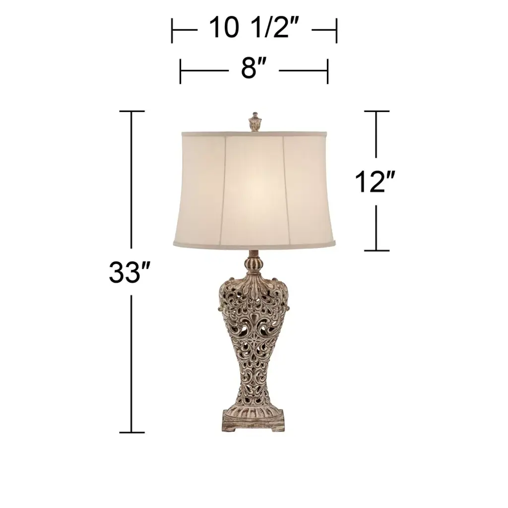 Barnes And Ivy Elle Traditional Table Lamp 33" Tall Antique Gold Florentine Off White Oval Shade For Bedroom Living Room Bedside Nightstand Office