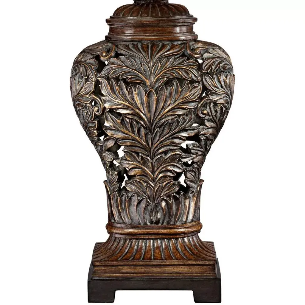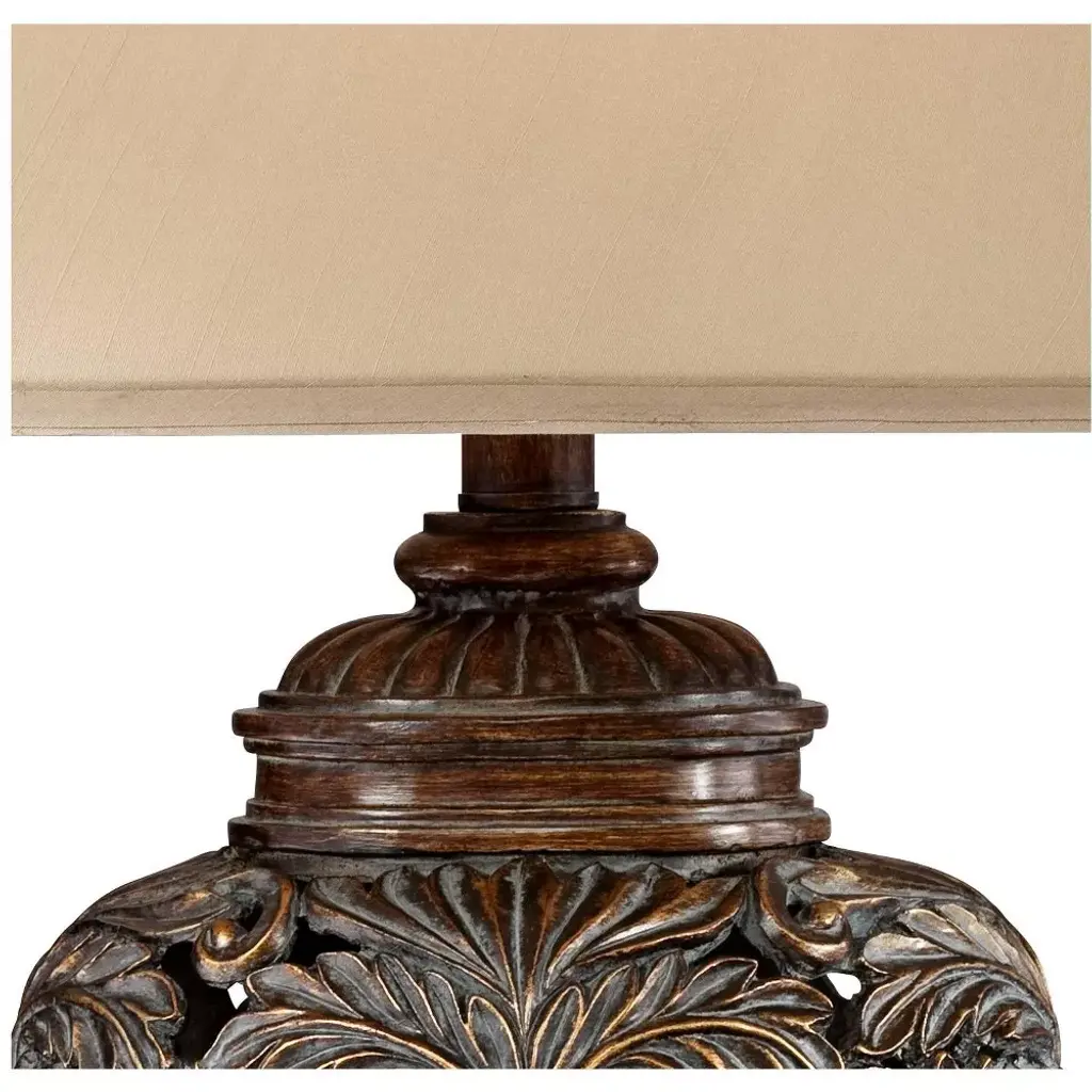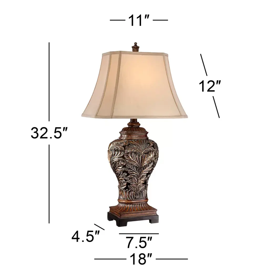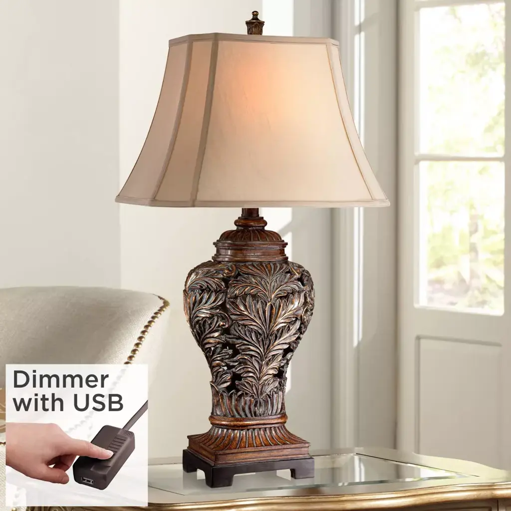 Barnes And Ivy Leafwork Traditional Table Lamp 32 1/2" Tall Bronze With Usb Dimmer Cord Tan Rectangular Shade For Bedroom Living Room Bedside Office
