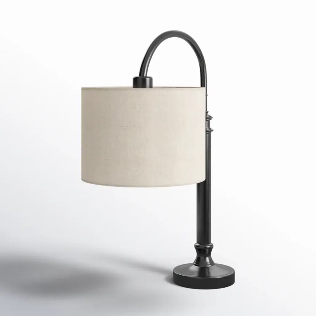 This metal desk lamp features a beautiful black finish that adds a rich accent to your living space. The lamp is elegantly curved with soft edges, and is adjustable to provide targeted illumination. Topped off with a crisp white drum shade, this lamp provides a subtle and appealing contemporary design wherever placed. - Product Details provided by Manufacturer, Slumberland not responsible for errors in information.