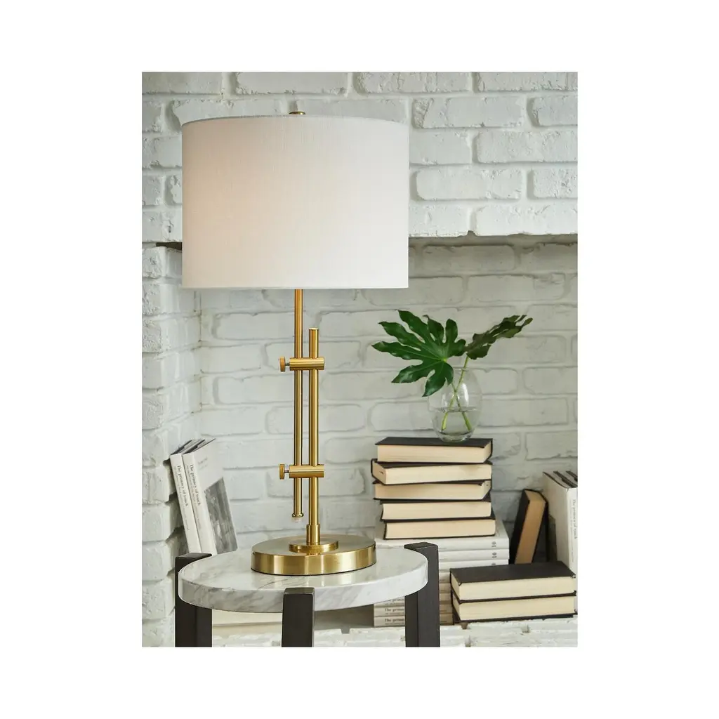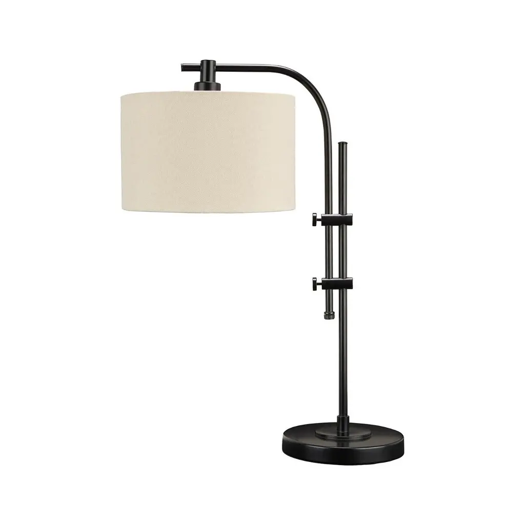 The Baronvale metal desk lamp features a beautiful black finish that adds a rich accent to your living space. The lamp is elegantly engineered, and is adjustable to provide targeted illumination. Topped off with a crisp white drum shade, this lamp provides a subtle and appealing contemporary design wherever placed.