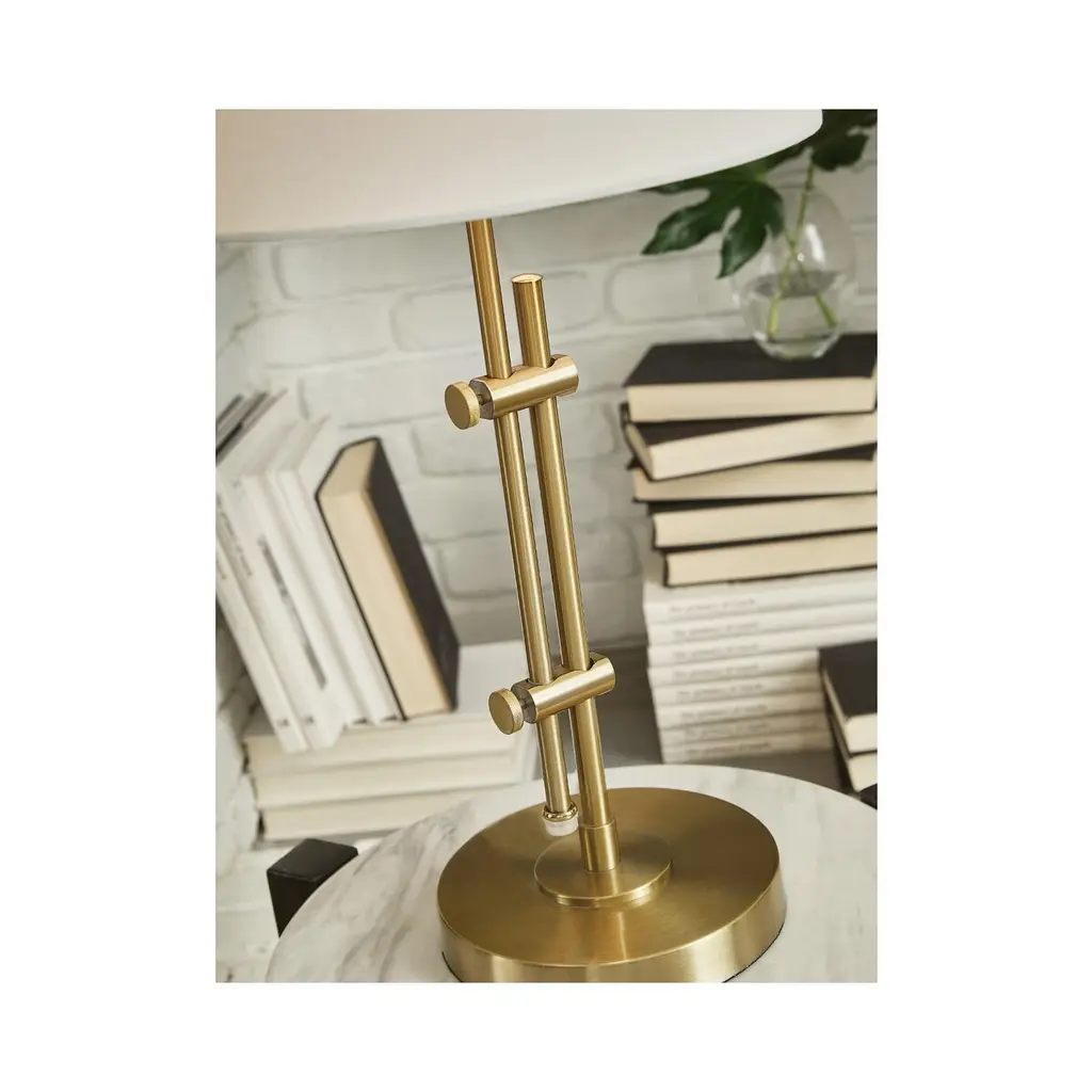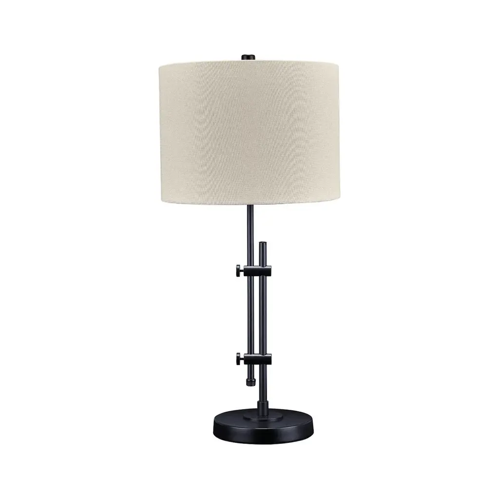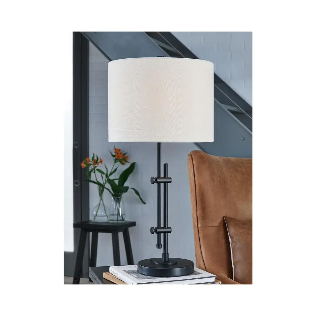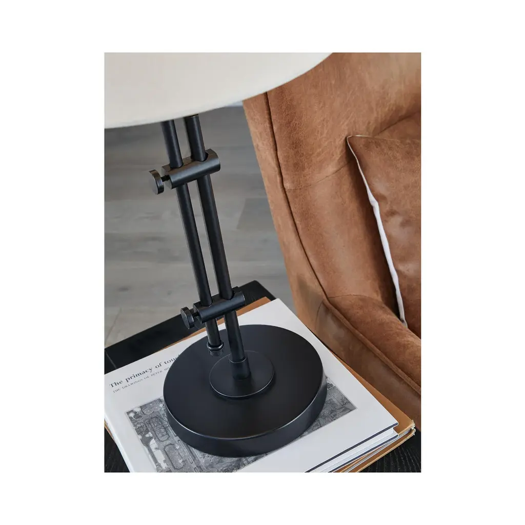 The Baronvale metal desk lamp features a beautiful black finish that adds a rich accent to your living space. The lamp is elegantly engineered, and is adjustable to provide targeted illumination. Topped off with a crisp white drum shade, this lamp provides a subtle and appealing contemporary design wherever placed.