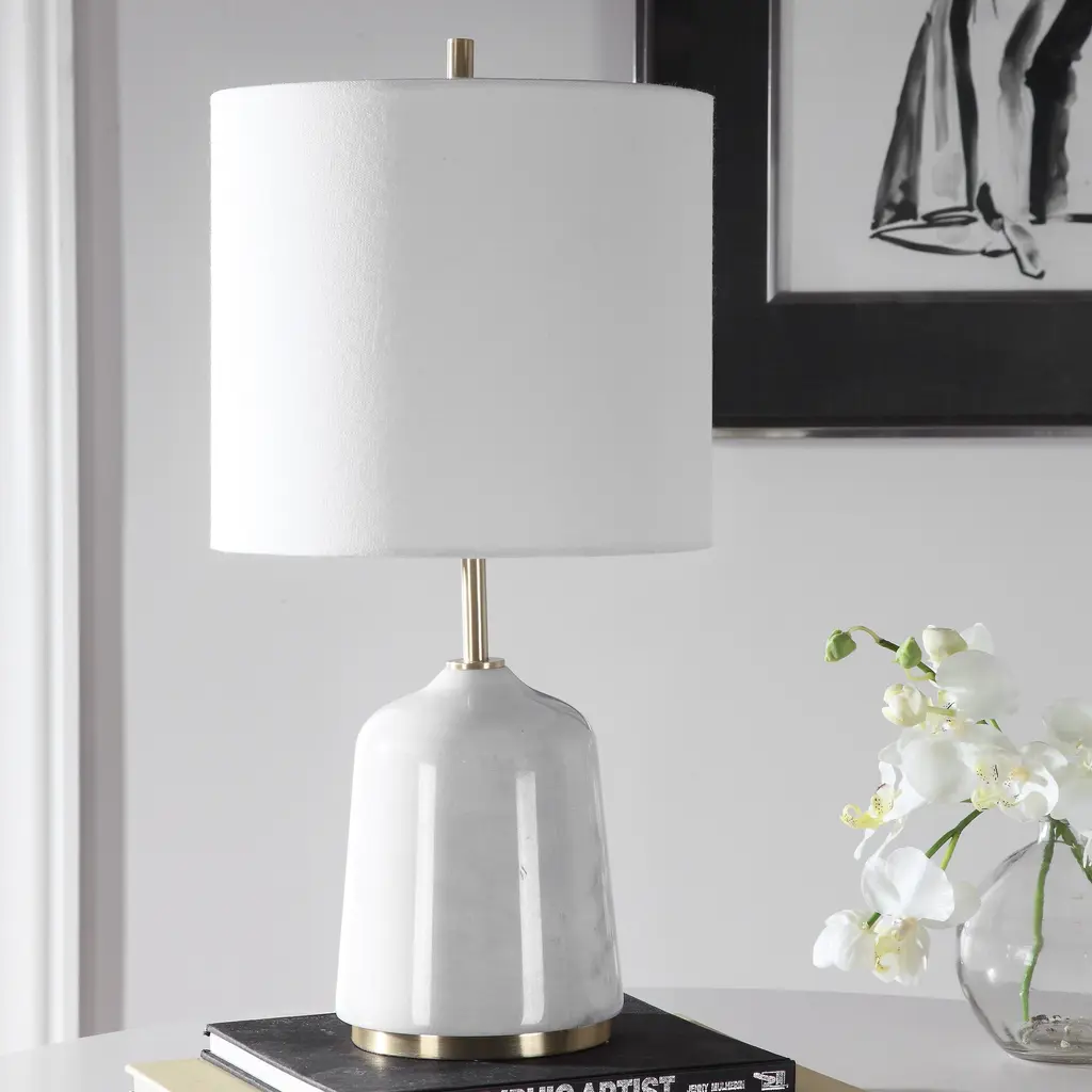 Barre 23 Inch 100 Watt White And Brass Table Lamp Portable Light