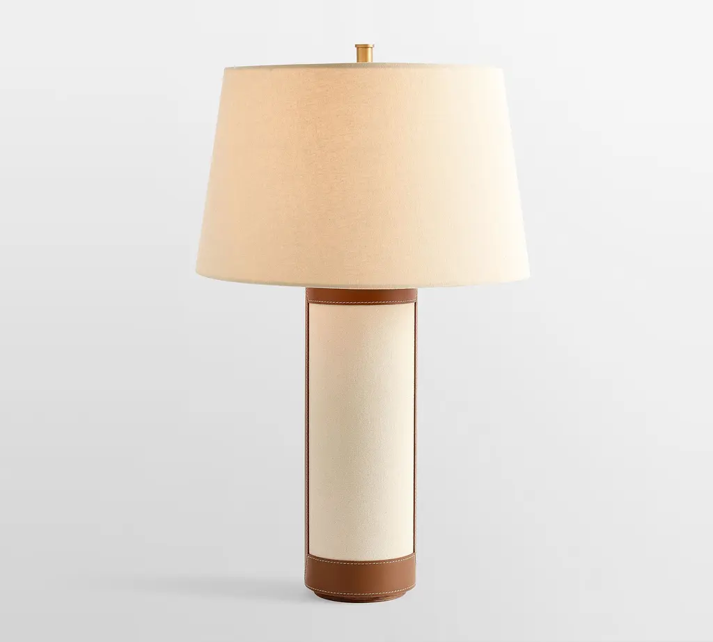 This table lamp offers a handsome masculine touch for any room. With its bold barrel silhouette and vintage leather finish, this transitional design works well in both traditional and contemporary decor.