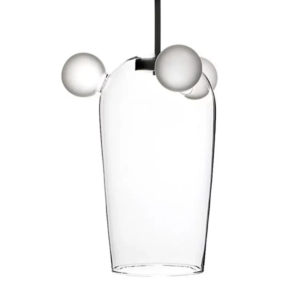 Its bell-shaped clear blown glass with three frosted spheres is a tribute to Bartolomeo Colleoni, an historical "condottiero" from Bergamo (Italy) of the 1400s.