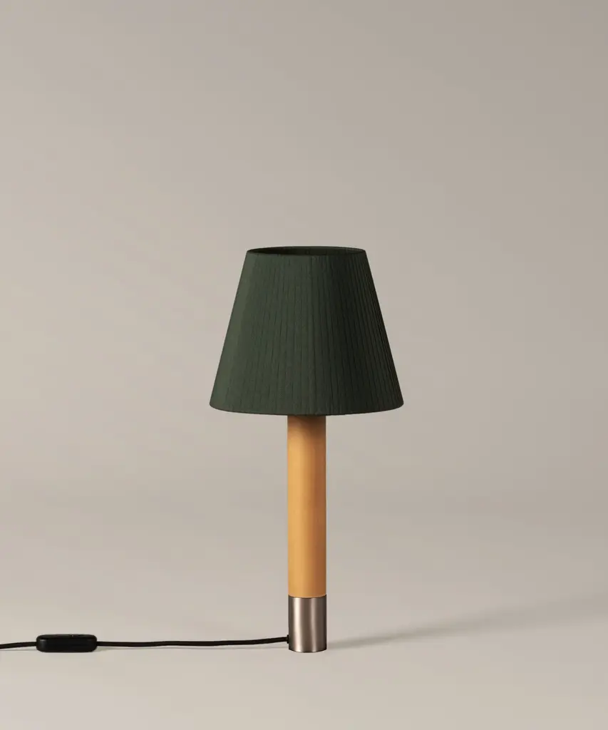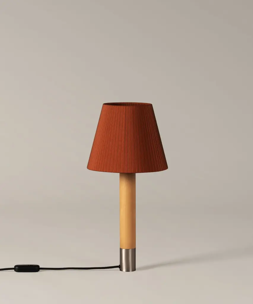 At a time when international preferences were leaning towards lamps with metal shafts and dichroic halogen bulbs (in other words, cool beam and touch), the Básica lamp sought to champion other, warmer alternatives. A wooden column, held up by a heavy metal base with the same diameter, supports a range of shades in different shapes and colors. Although the lamp balances well in this format, an optional, wider base may be placed underneath. The Básica lamp heralded a revival of natural materials, such as wood, stitched cardboard, or ribbons, and provided Santa & Cole with a springboard for international expansion, generating an alternating current in Europe that challenged prevalent tastes. A more familiar, craftsman-like, and gentle form of modernity was being advocated. Produced by the Barcelona-based lighting purveyor, Santa & Cole.