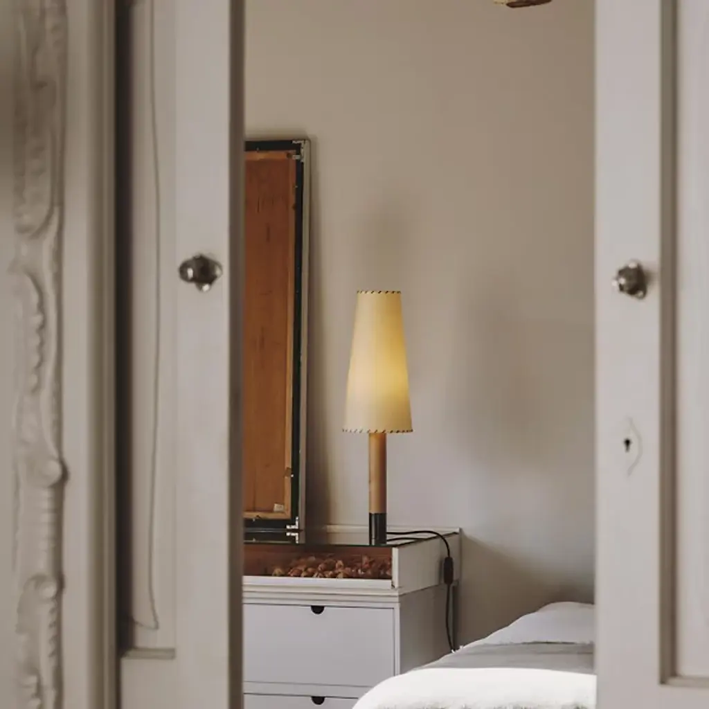 Designed in 1987 to bring warmth back to residential settings, the Santa & Cole Basica M2 Table Lamp is an attractive combination of stitched beige cardboard and birch wood. The narrow conical shade easily transitions to the slender cylindrical structure, blending natural tones together for a pleasing ambient light. The metal base is stabilized with an included plate, easily placing this lamp around spaces where comforting light is needed.