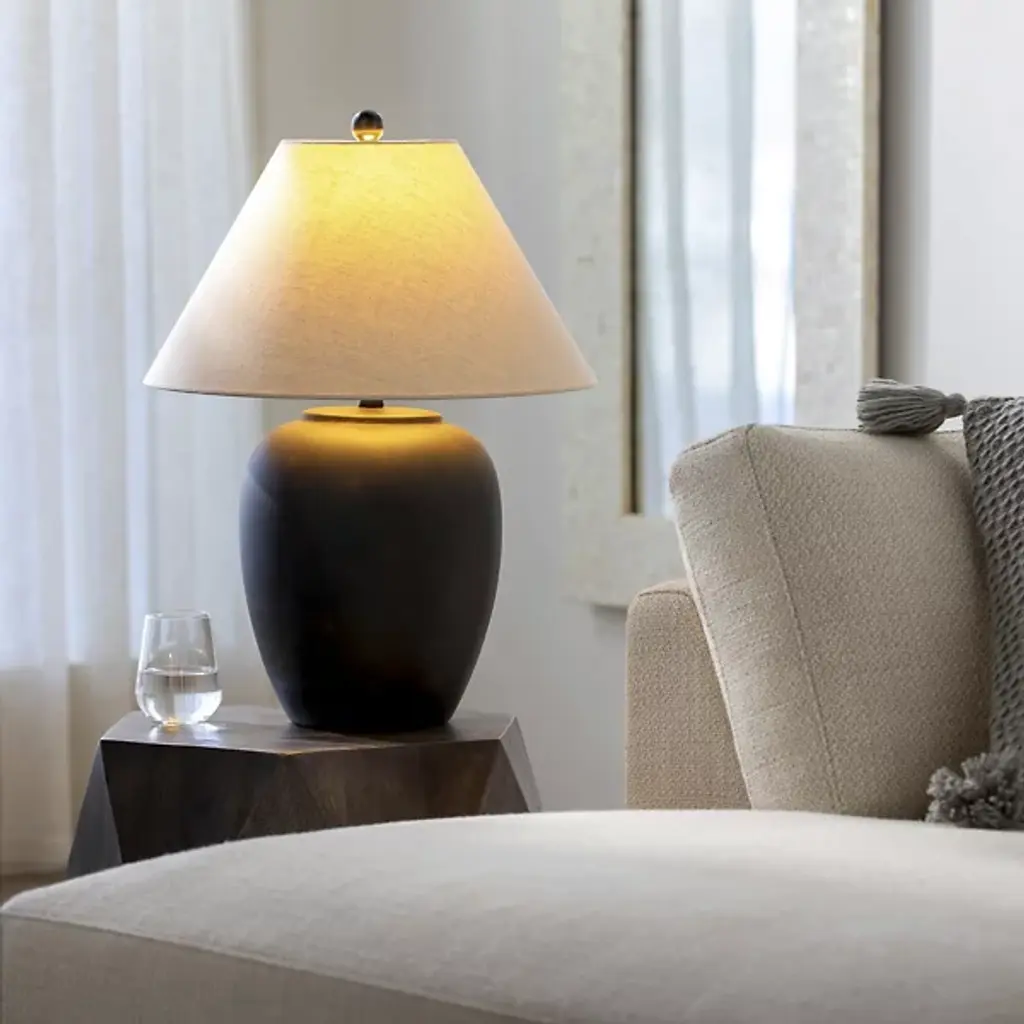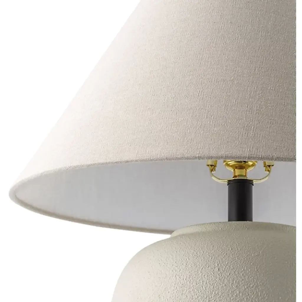 The Bastille Table Lamp from Surya features a country cottage-inspired ceramic body with gentle textural elements that bring tactile depth to any tabletop surface. Its linen shade works in concert with the ceramic base, distributing light consistently throughout your space while enhancing the handcrafted quality of the overall design. The lamp’s 3-way socket offers practical lighting control for different activities throughout the day. With its well-distributed illumination, this table lamp performs exceptionally on side tables, buffet surfaces, or as symmetrical pairs in bedroom settings where its soft glow establishes a relaxed, welcoming atmosphere.