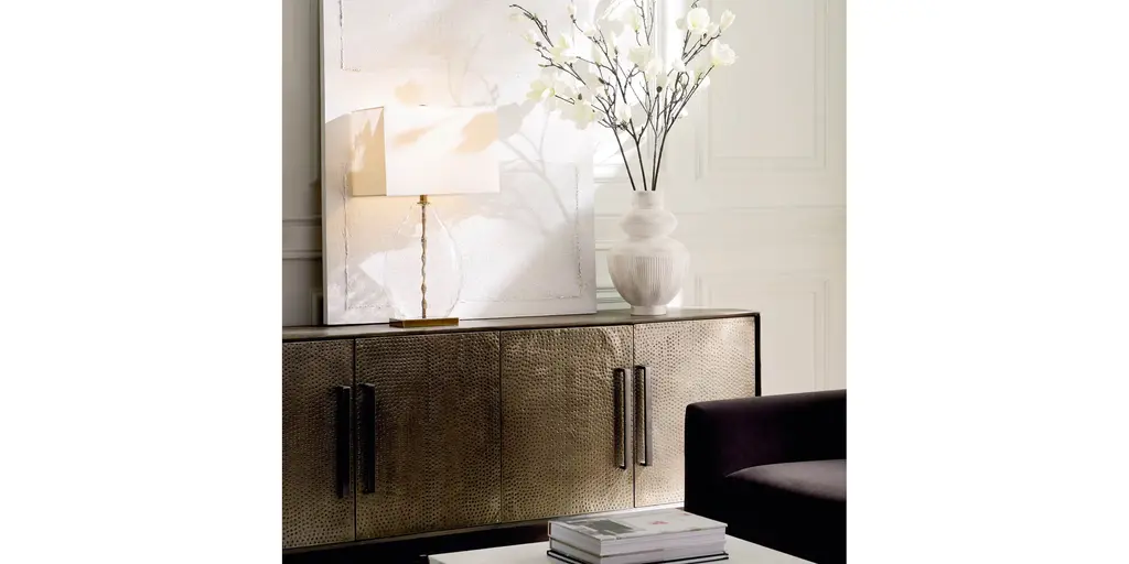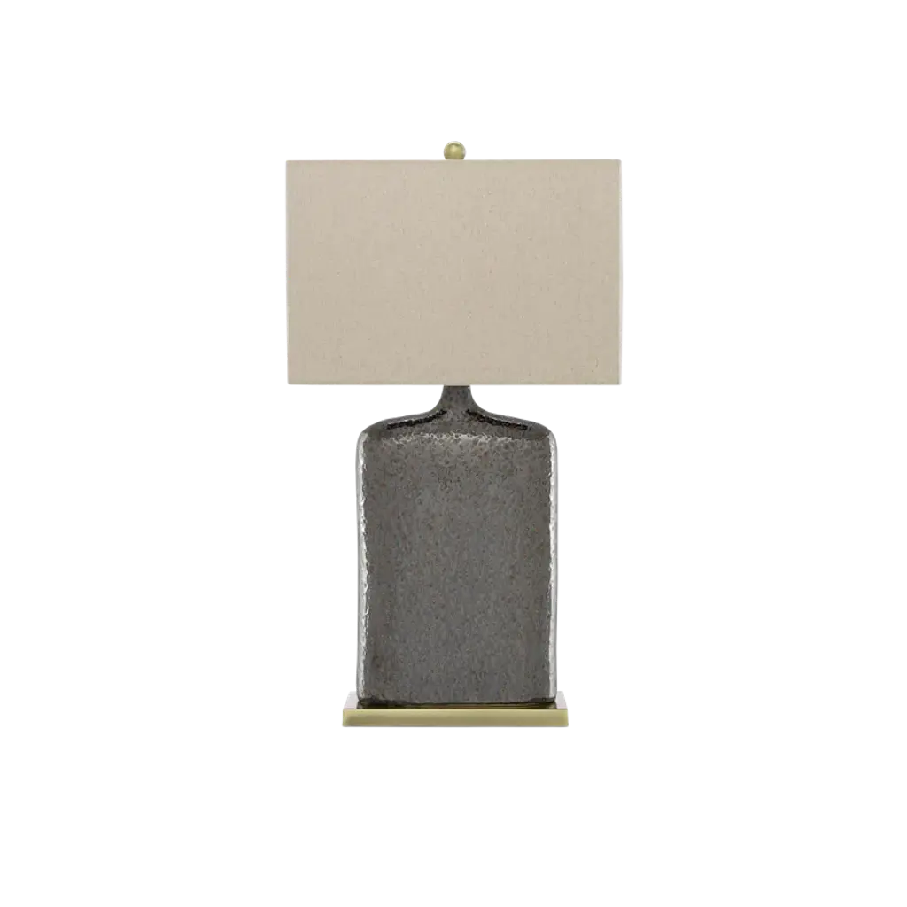 The Bateman table lamp combines rippled glass infused with gold flecks and brass-plated iron to deliver a new twist on an old favorite. The classic teardrop shape married with the rectangular shade make this lamp extraordinarily classy, yet versatile.