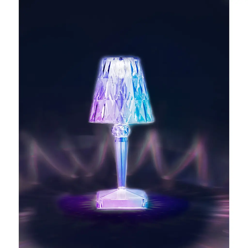 Designed by Ferruccio Laviani for Kartell, the Battery Table Lamp is a compact, yet striking design perfect for a bedside or living room end table. Crafted of molded PMMA, the detailed shade is crafted to appear made from finely cut crystal, emitting a jewel-like pattern of light. Rechargeable and portable, this convenient beauty is ready to accent any space indoors or out.Highlights