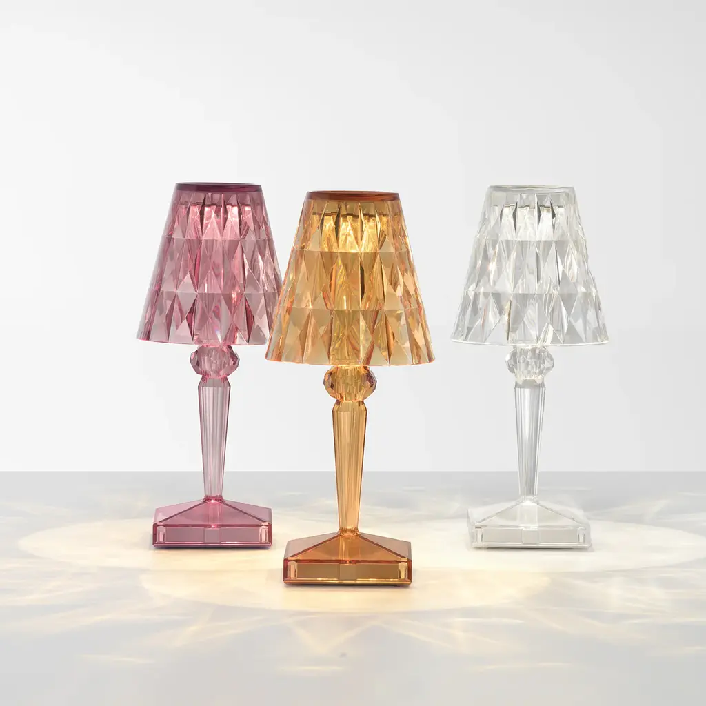 Designed by Ferruccio Laviani for Kartell, the Battery Table Lamp is a compact, yet striking design perfect for a bedside or living room end table. Crafted of molded PMMA, the detailed shade is crafted to appear made from finely cut crystal, emitting a jewel-like pattern of light. Rechargeable and portable, this convenient beauty is ready to accent any space indoors or out.Highlights