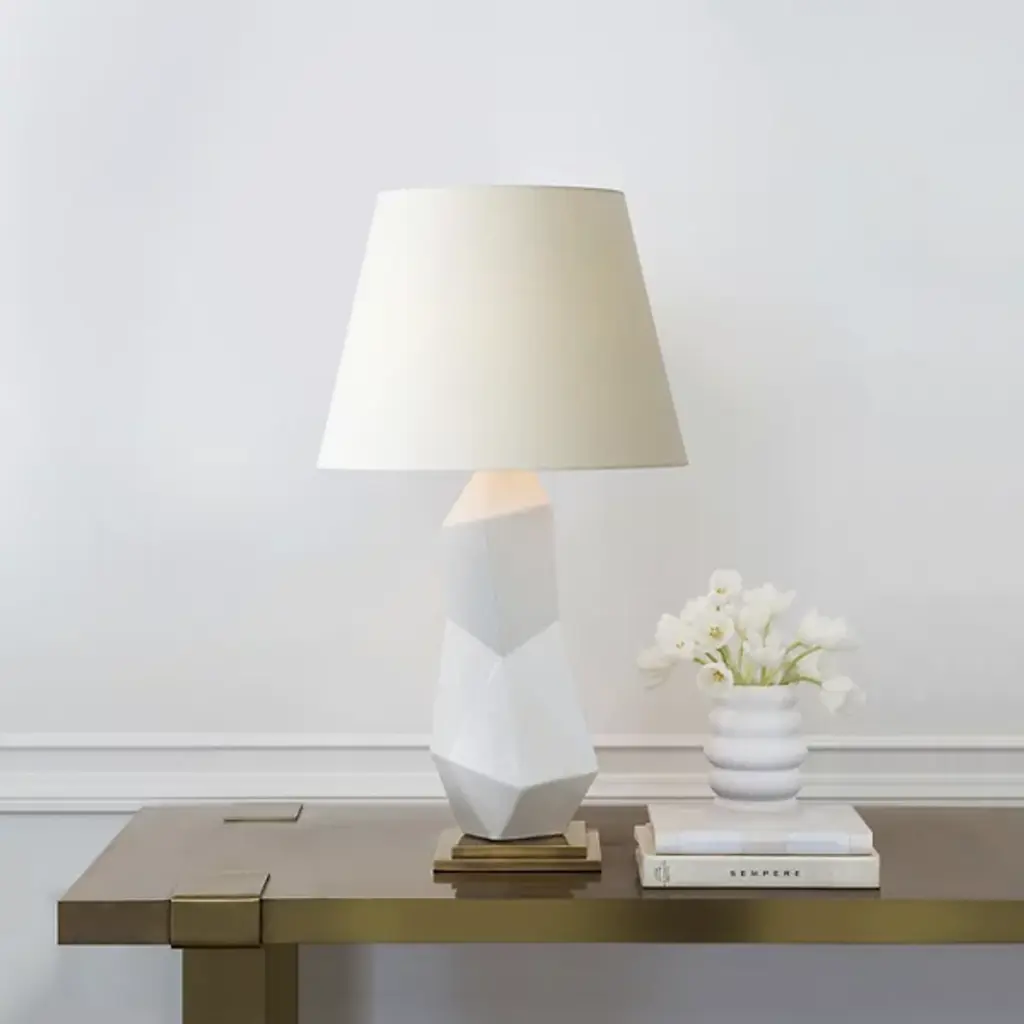 Bring the visually stunning Bayliss Table Lamp by Visual Comfort Signature, formerly known as Visual Comfort, into your home! Fine porcelain has been worked into an asymmetrical form. The noticeable lined detailing that accentuates your lamp’s surface draws in your gaze. This well-made decorative piece gives the illusion that the lamp could topple over. This captivating presentation exemplifies the level of craftsmanship involved in the design of this lamp. With a baseplate to keep the lamp in place, you may rest assured that this table lamp will be firmly supported at all times.
