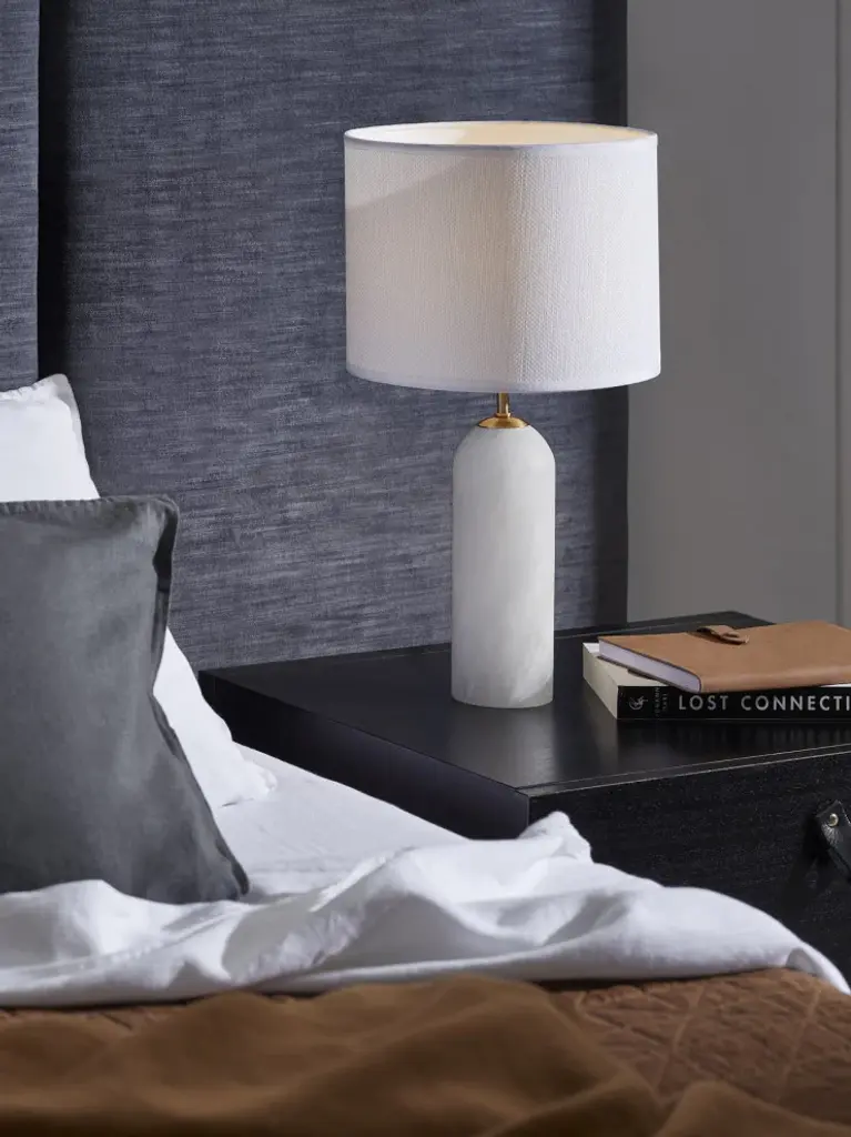 Beacon Lighting Firma 2 Light Table Lamp, Alabaster With White Linen Shade