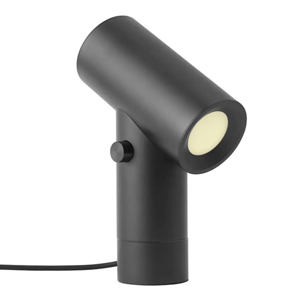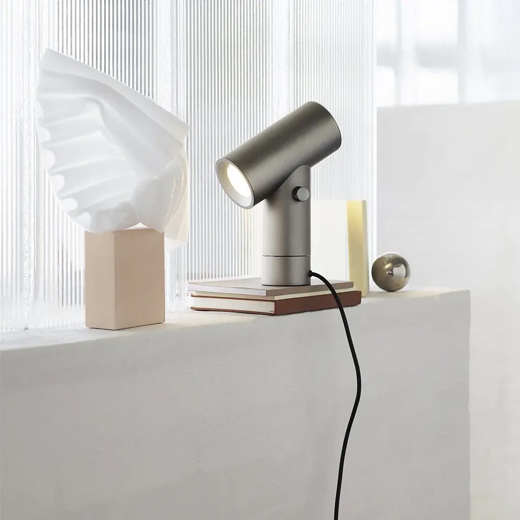 Beam Lamp is a versatile lamp with a modern expression and intuitive user-friendliness. With light omitted from both ends of a cylinder shape, the user can alter the volume of light in each end through the turn of a playful.