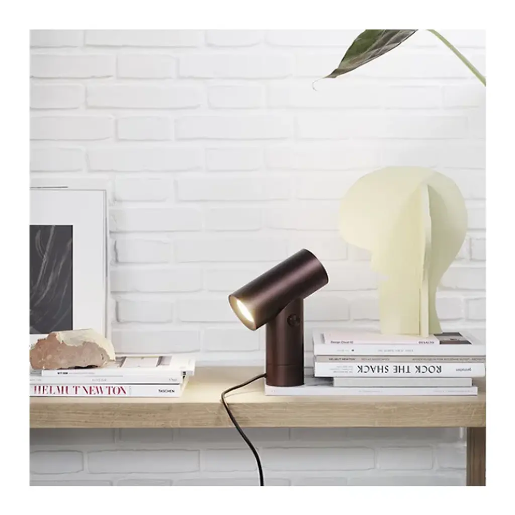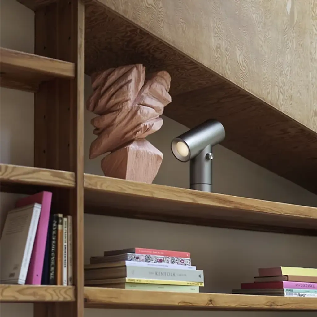 Designer Tom Chung wondered, how to illuminate the bookcase he designed and the ceiling above without having to install new ceiling lights? His solution, the Beam LED Table Lamp from Muuto, a piece built with precision and an appreciation for a simple form. Its rotating cylindrical base is accented by a simple dial that controls the vibrancy of both lights. Appearing to be intersected by the base, its angled cylindrical head is pure form producing focused up light and downlight. Like the designer, the piece is sure to elegantly solve a few head-scratching lighting challenges in your home.
