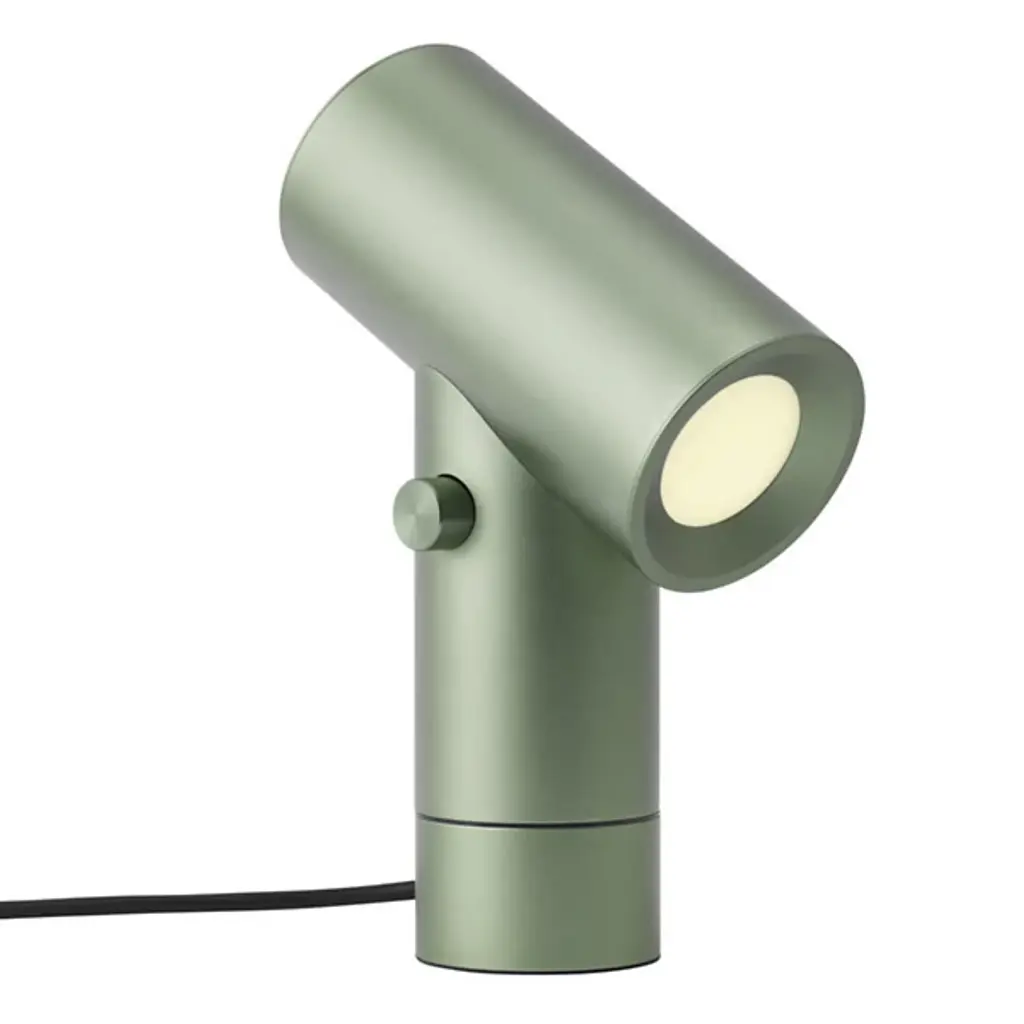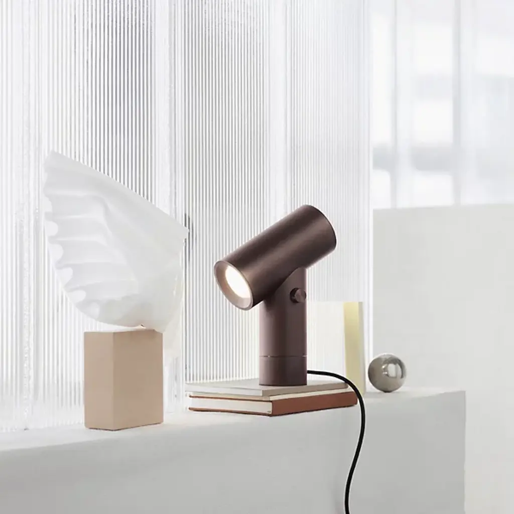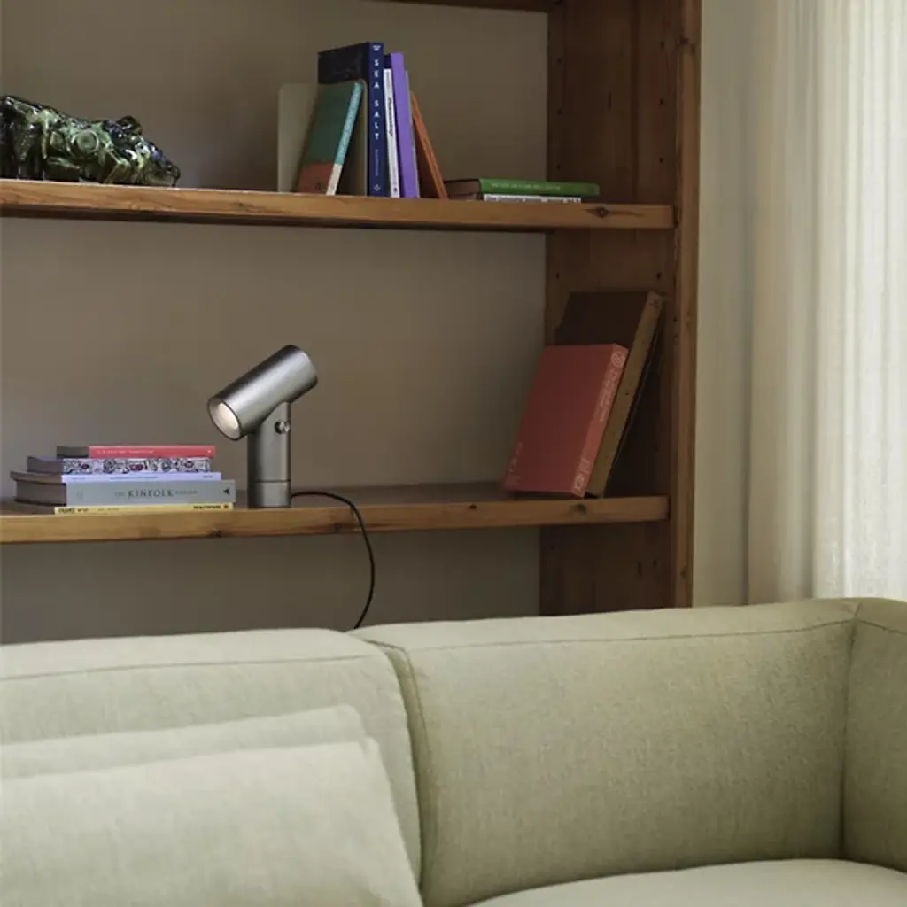 Designer Tom Chung wondered, how to illuminate the bookcase he designed and the ceiling above without having to install new ceiling lights? His solution, the Beam LED Table Lamp from Muuto, a piece built with precision and an appreciation for a simple form. Its rotating cylindrical base is accented by a simple dial that controls the vibrancy of both lights. Appearing to be intersected by the base, its angled cylindrical head is pure form producing focused up light and downlight. Like the designer, the piece is sure to elegantly solve a few head-scratching lighting challenges in your home.