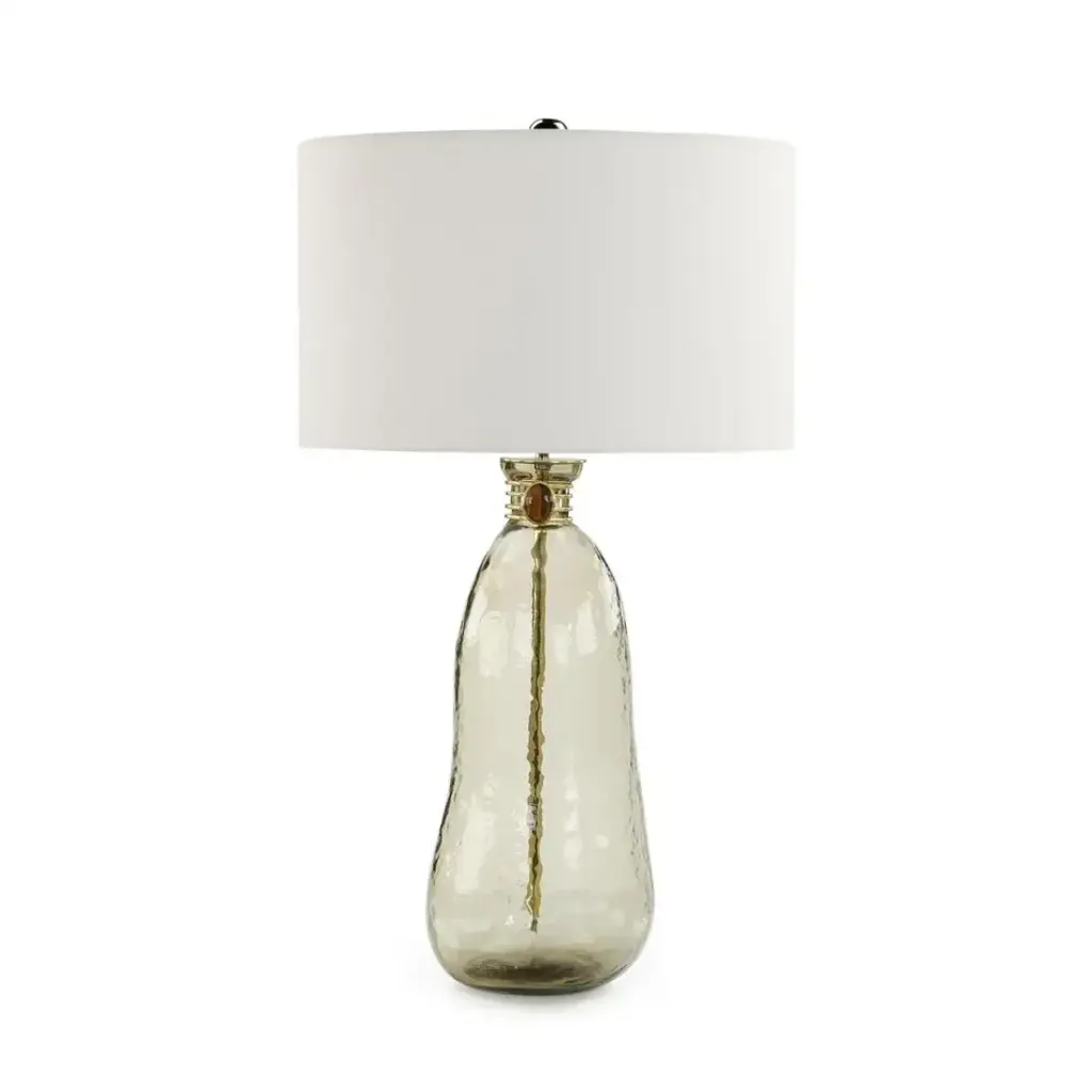 The Beatrice Table Lamp evokes a stylish look that blends a timeless look with contemporary stylings. Crafted from clear glass, the piece takes on an asymmetrical look that is punctuated with a Polished Brass accent embellished with Tiger’s Eye. Brass hardware matched by a ball finial completes the look of this gorgeous three-way lamp with a turnkey switch.