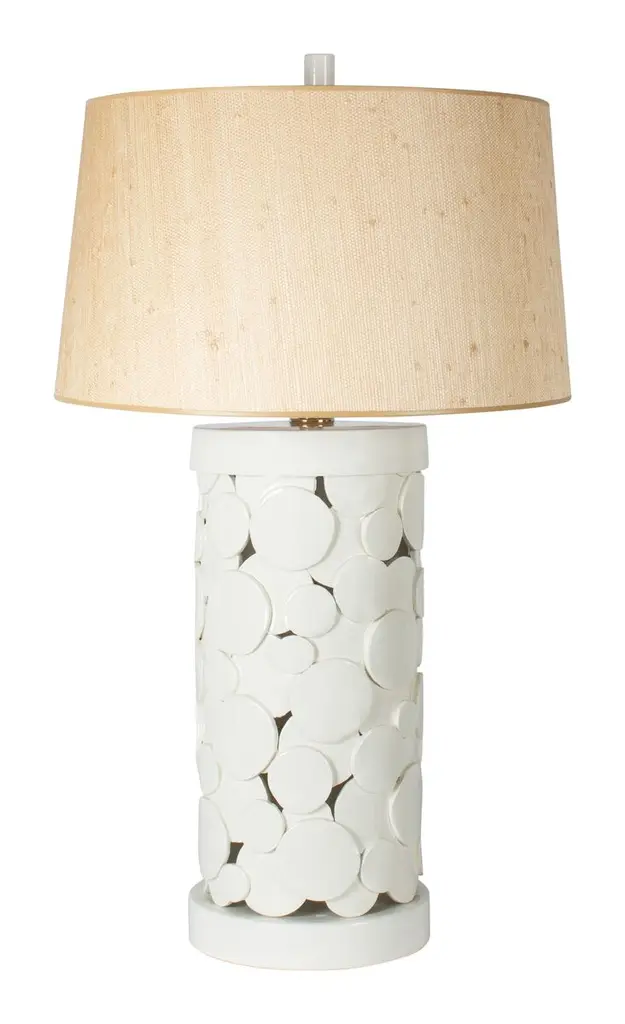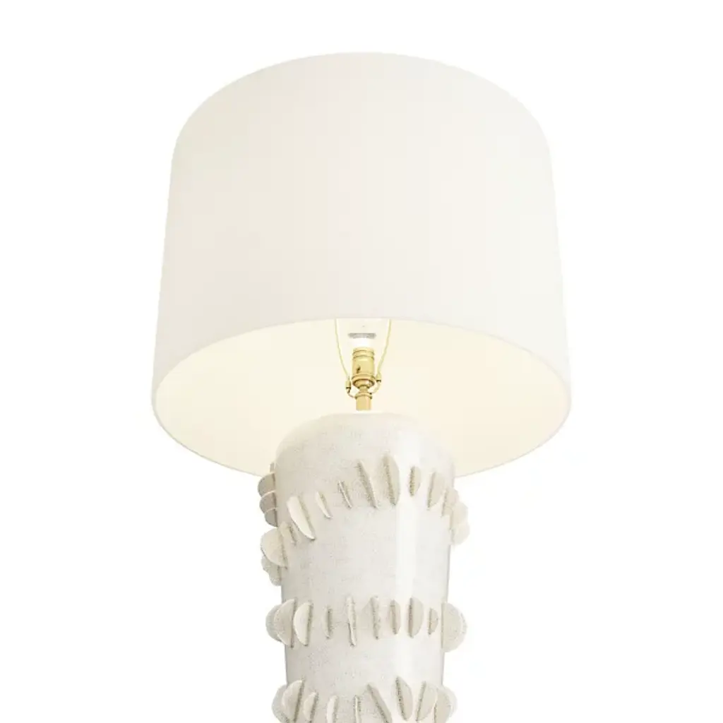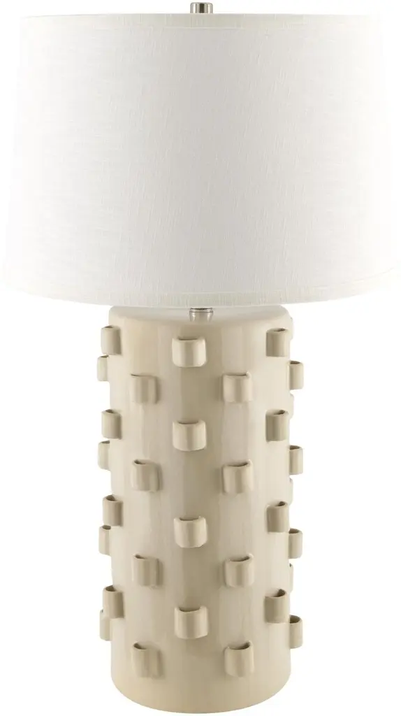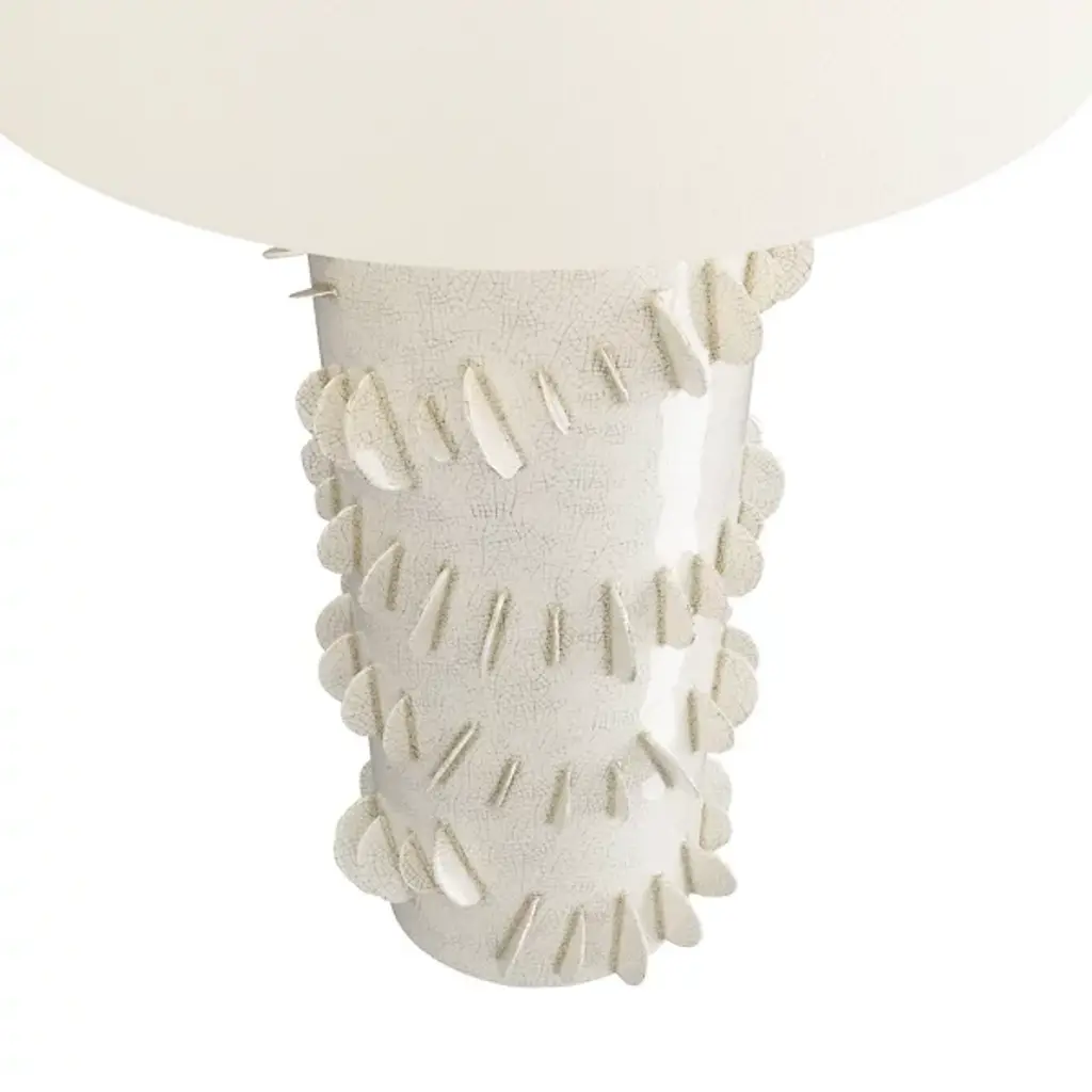 Drawing inspiration from the graceful lines of aquatic plants and coral, the Beatrix Table Lamp from Arteriors is a masterpiece in ivory ceramic with a delicate crackle finish. Its base features hand-applied "fins," adding captivating texture, while the ivory drum shade is adorned with a matching ceramic finial. Enhanced with antique brass hardware, a clear silver cord, and a three-way rotary switch, this lamp brings a touch of the sea's elegance and organic beauty to your space.