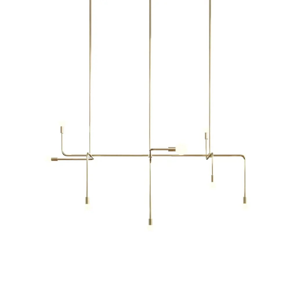 Beaubien 08 is the smallest in a series that pairs the collection's signature twisting black rods with domelike metal shades in a choice of brass or graphite. The linear structure's gleaming brass connectors play up the multiple milky glass globes that are positioned up, down and sideways, glowing with warm LED illumination. A dramatic addition for a limited space, Lambert & Fils suspension lamp is completely handmade at the brand's Montreal atelier.