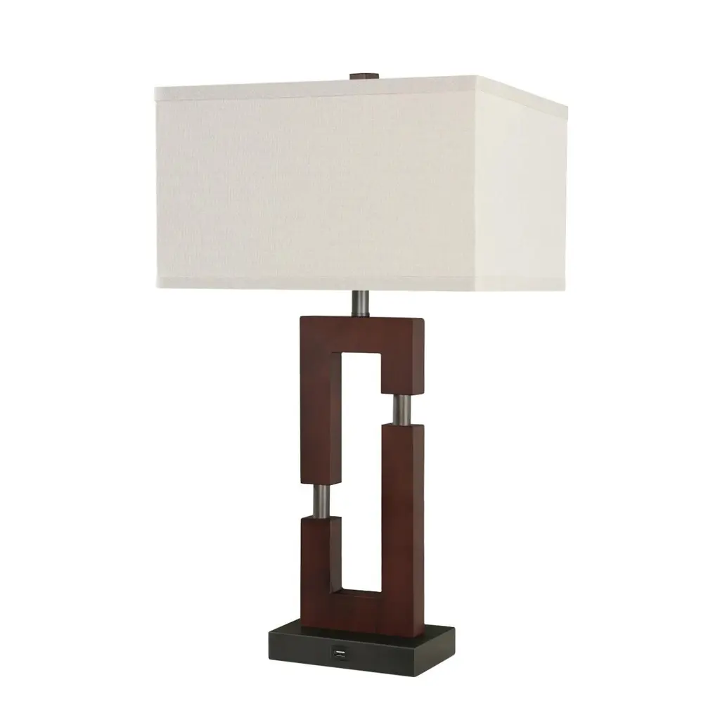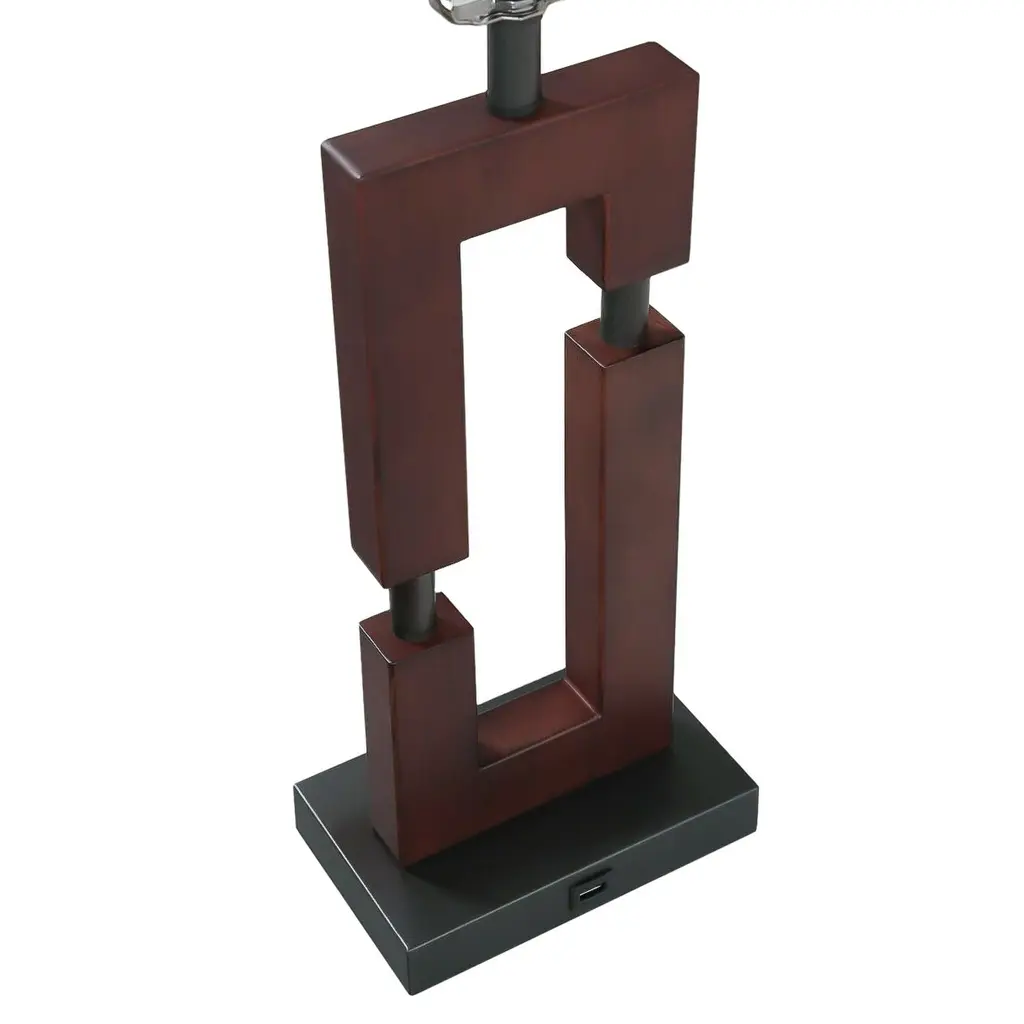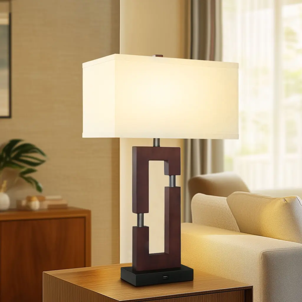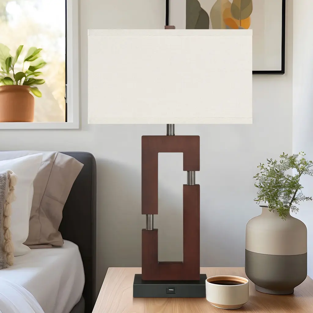 Representative of minimalist art, this set of two table lamps has brought you brand-new visual art. Its frame-like lamp body and dark wood pattern, specially made with resin and metal, show the beauty of the line. Perfect for modern decoration at home or office. White linen effectively covers the light bulb and makes it a great luminary. Besides all that, it comes with a very convenient USB port, which allows charging devices while using the light.Feature:Highlight: