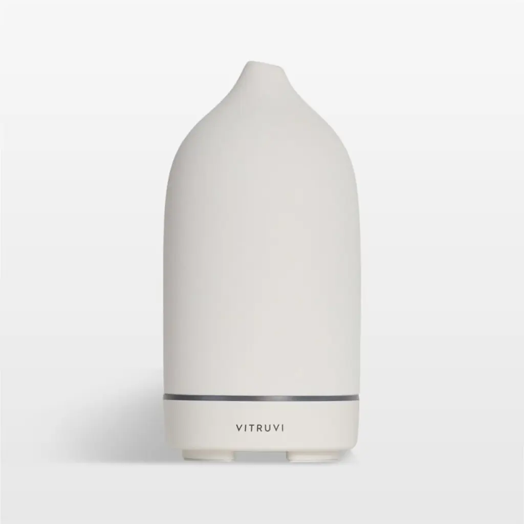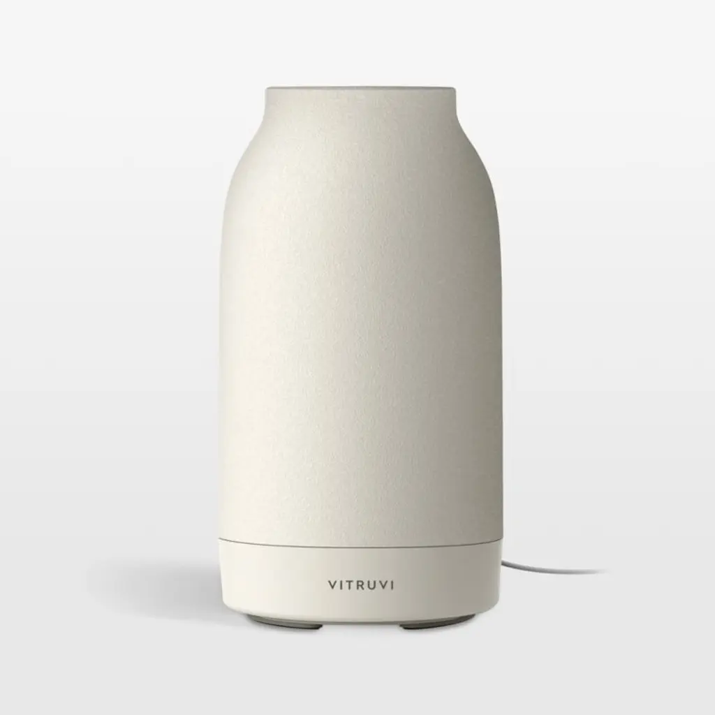 Designed to be used with our Apothecary home oils or your favorite essential oils, this petite ultrasonic diffuser creates lightly scented mist throughout your space. Ideal for smaller rooms, simply fill it with water and add a few drops of your favorite scent to set the mood. It can be set to mist continuously for up to five hours, or intermittently for 11 hours. While in use, the silent diffuser glows softly with multiple light settings for a subtle lamp effect.