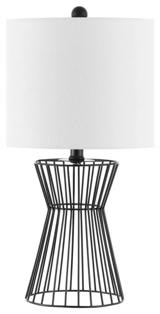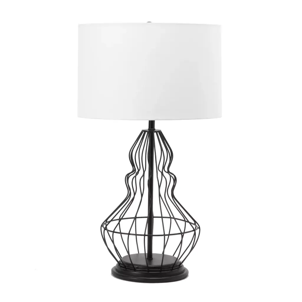 This table lamp combines an airy black metal mesh base with included white drum shade. Overall 24" H x 15.75" W. Bulb: 1 x 60W Max, Medium Base(Not Included)