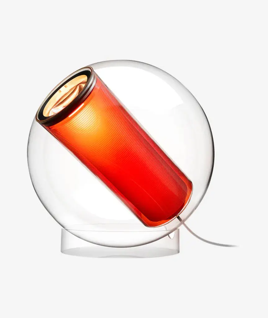 Bel Occhio is both a multi-position spot light and ambient table lamp combined. The spherical acrylic shell is gently cradled in its base allowing infinite adjustment with a touch of the hand. Its inner column suspends freely within a clear acrylic shell to provide both ambient and focused illumination.