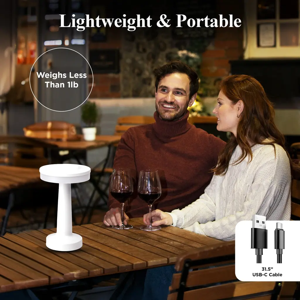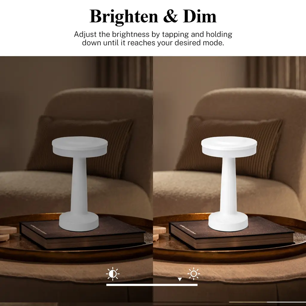 Brighten up your space with the new, sleek and stylish Bell + Howell Lexington Table Lamp in a sophisticated finish. Designed to be both functional and elegant, this cordless lamp offers the ultimate in portability and convenience, featuring easy touch control. Tap to turn the lamp on or off, and hold to adjust the brightness to your preferred level. With three adjustable color modes—warm, white, and daylight—you can easily create the perfect ambiance for any room or occasion. Whether used on your bedside table, office desk, or even outdoors, this lamp fits seamlessly into any setting. Equipped with a powerful 1200mAh rechargeable battery, the Lexington Lamp provides up to 6 hours of continuous light on a single charge. The included 32-inch USB Type-C charging cable allows for quick and easy recharging, ensuring your lamp is always ready to use. Its durable, compact design stands at 7.6 inches tall, making it ideal for smaller spaces or for moving between rooms. Add a touch of modern luxury to your home with the Bell and Howell Lexington Table Lamp. Key Features