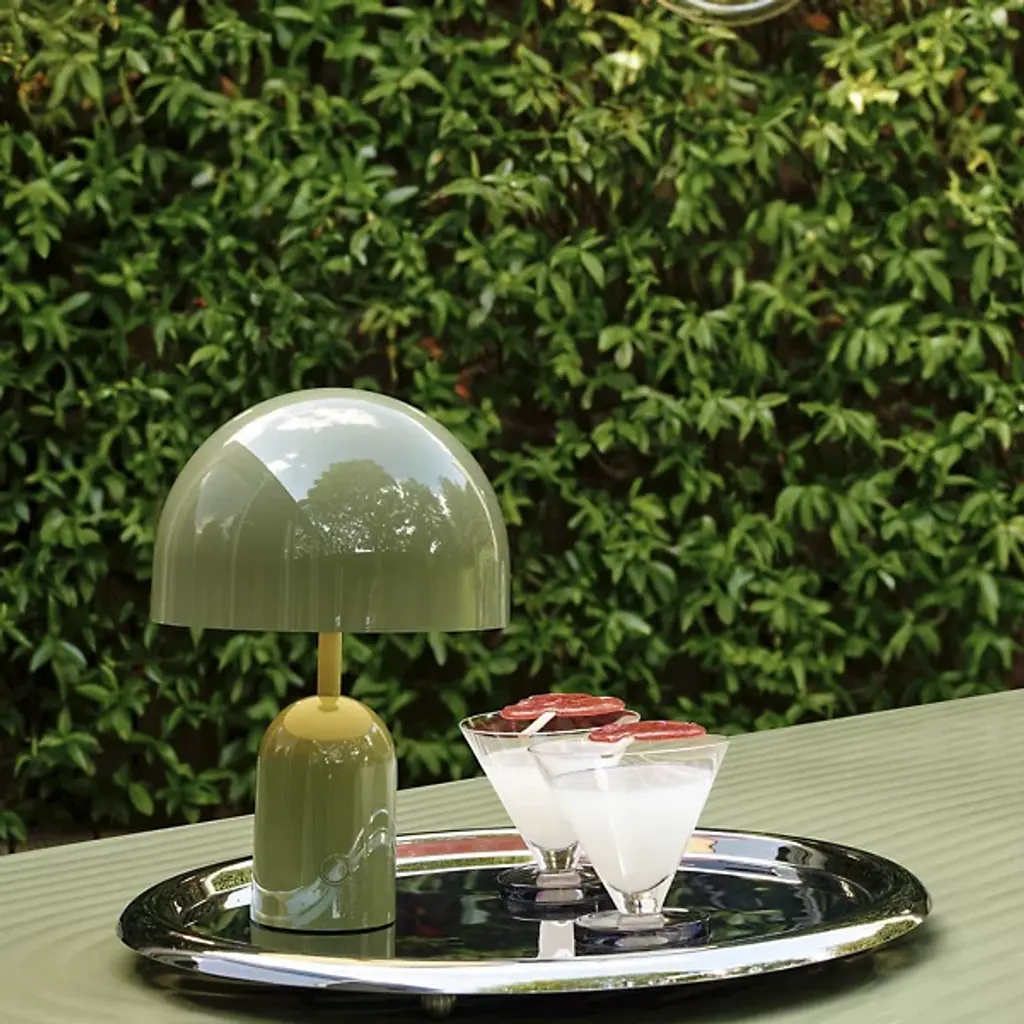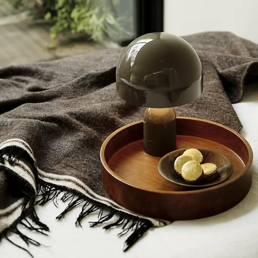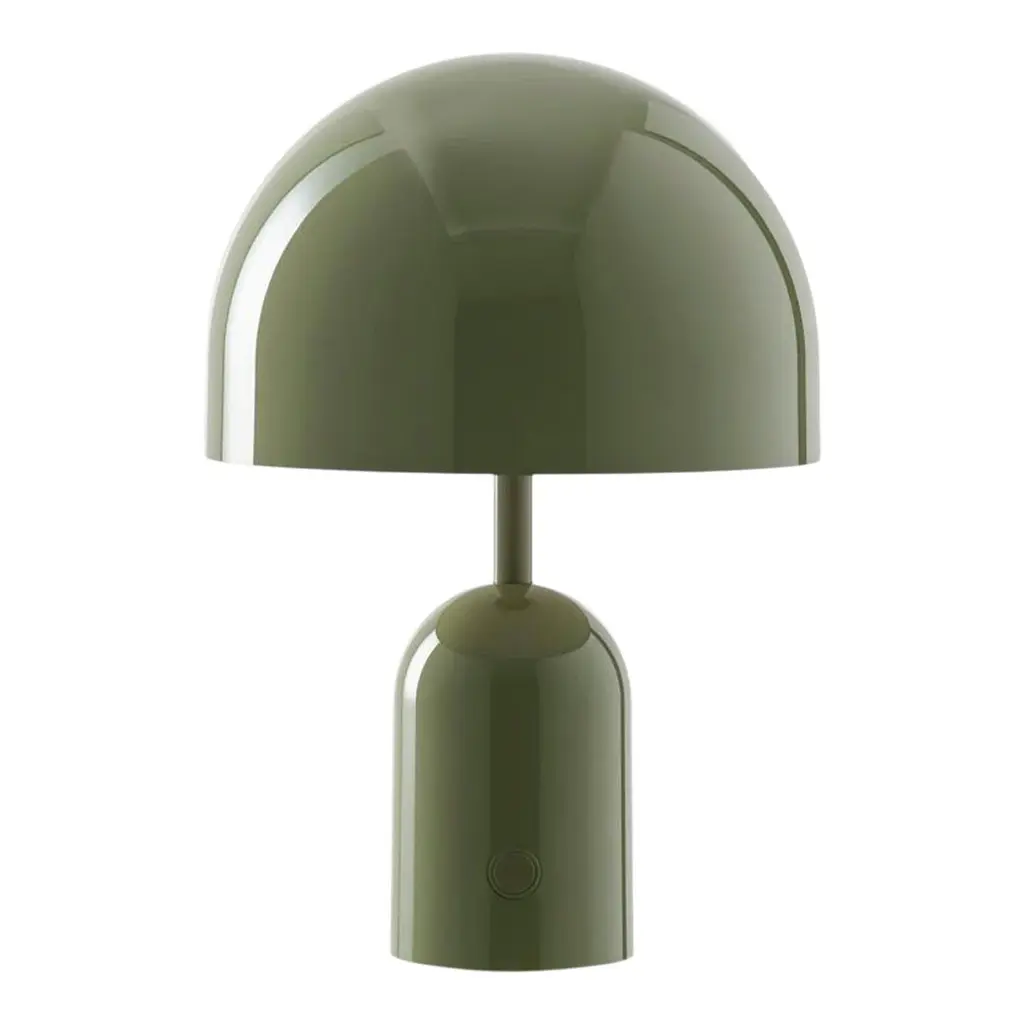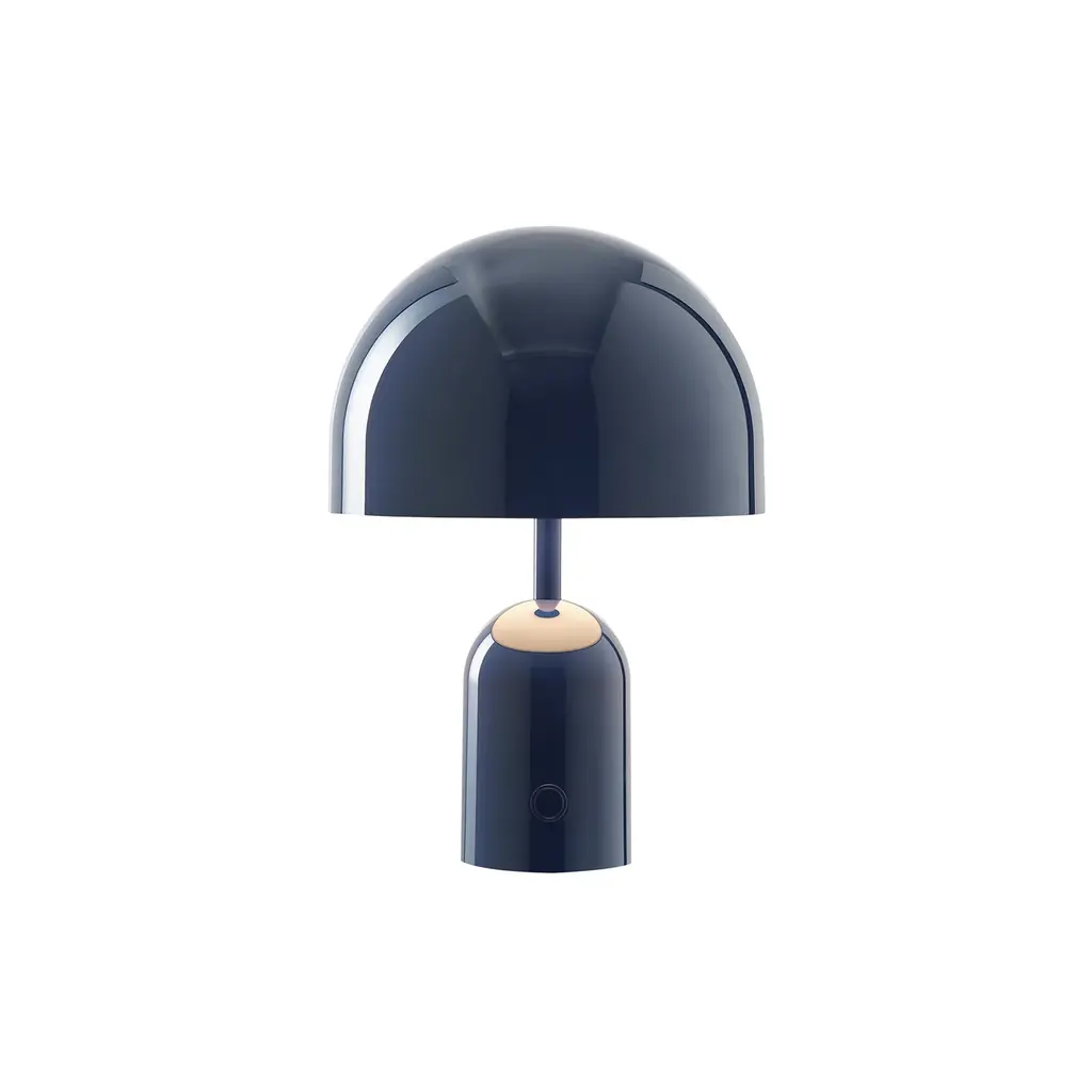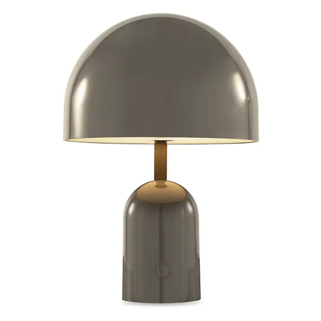 The Bell LED Rechargeable Table Lamp from Tom Dixon reflects the designer's 2021 exploration of reductionist forms through its dome-and-cylinder composition. Dixon developed this piece around the bell shape, where the rounded shade sits atop a matching cylindrical base, characterized by continuous curves. The rechargeable LED system eliminates cord dependency, and the ABS plastic construction keeps the weight manageable while maintaining structural integrity. Touch controls integrated into the base provide dimming capability, while the dome shape directs light downward for ambient illumination.