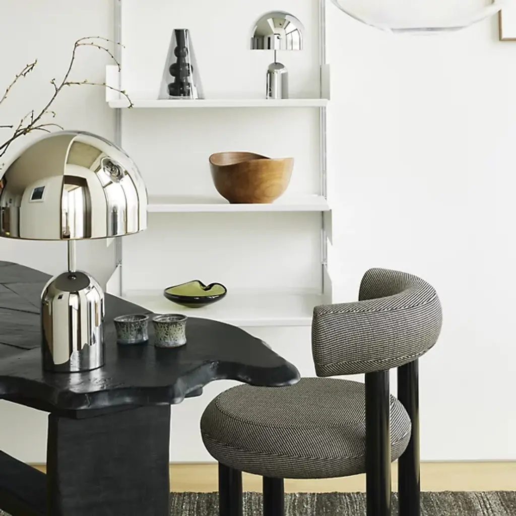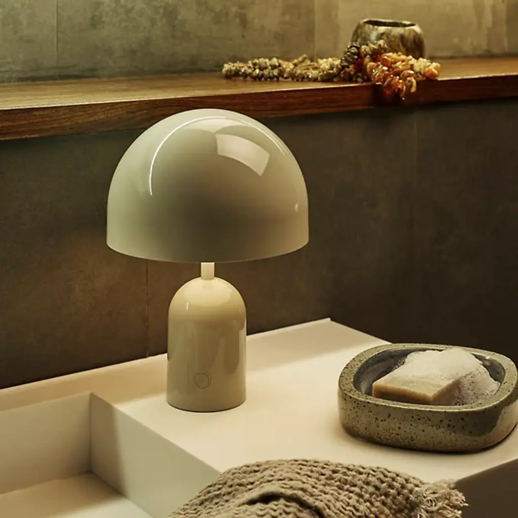 The Bell LED Rechargeable Table Lamp from Tom Dixon reflects the designer's 2021 exploration of reductionist forms through its dome-and-cylinder composition. Dixon developed this piece around the bell shape, where the rounded shade sits atop a matching cylindrical base, characterized by continuous curves. The rechargeable LED system eliminates cord dependency, and the ABS plastic construction keeps the weight manageable while maintaining structural integrity. Touch controls integrated into the base provide dimming capability, while the dome shape directs light downward for ambient illumination.