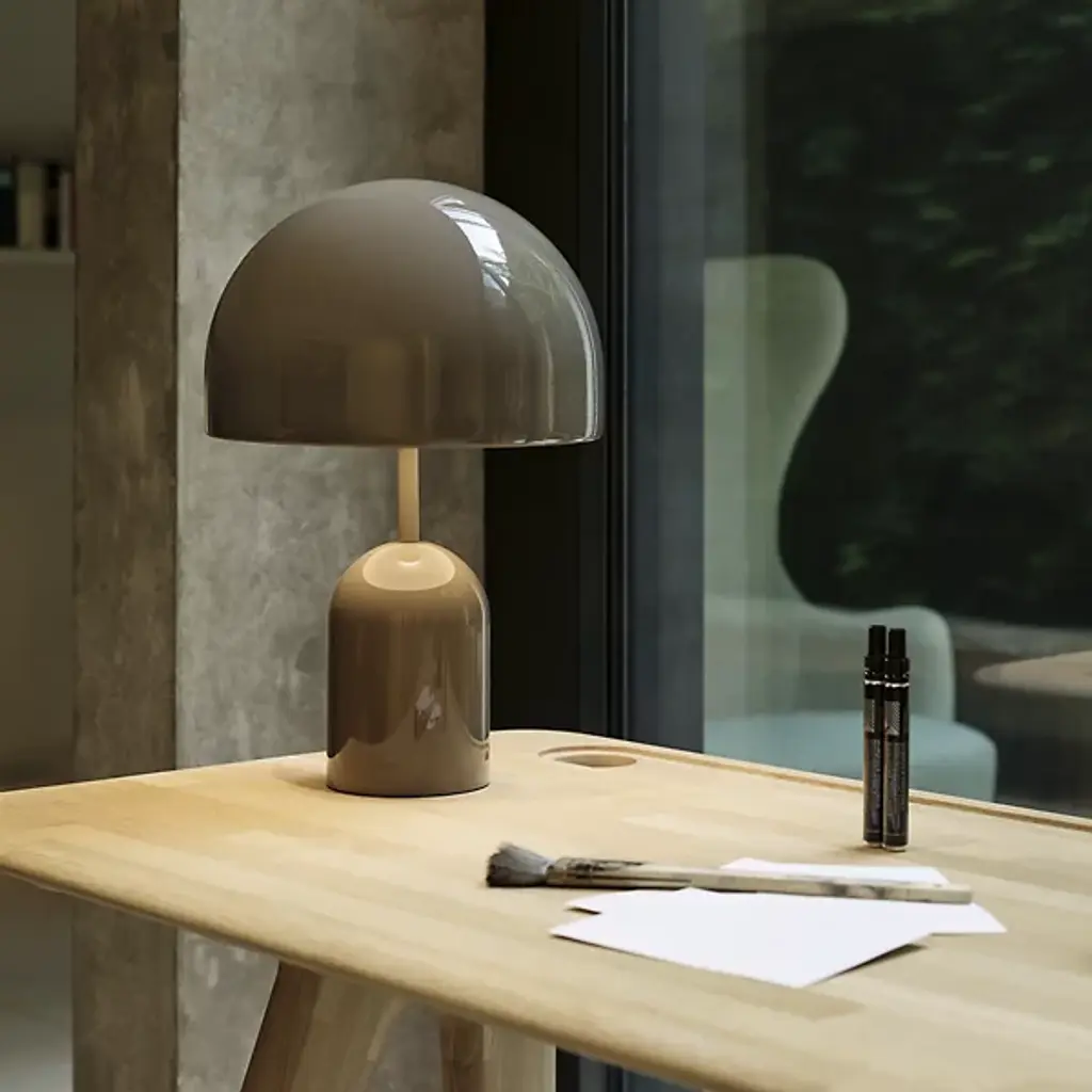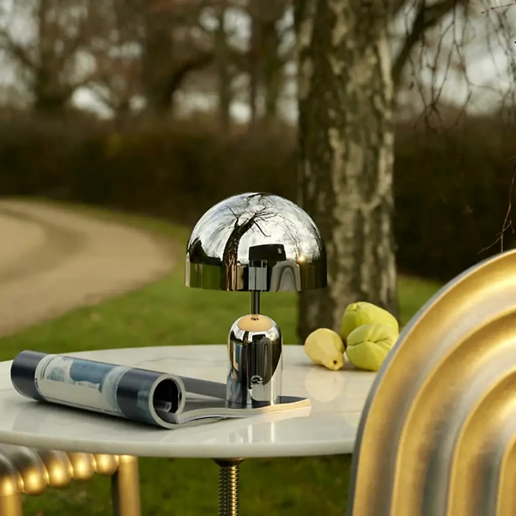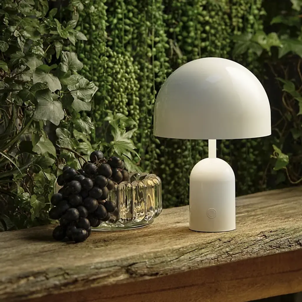The Bell LED Rechargeable Table Lamp from Tom Dixon reflects the designer's 2021 exploration of reductionist forms through its dome-and-cylinder composition. Dixon developed this piece around the bell shape, where the rounded shade sits atop a matching cylindrical base, characterized by continuous curves. The rechargeable LED system eliminates cord dependency, and the ABS plastic construction keeps the weight manageable while maintaining structural integrity. Touch controls integrated into the base provide dimming capability, while the dome shape directs light downward for ambient illumination.