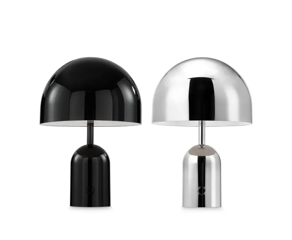BELL is a cordless LED table lamp.Taking its name from a classic dome shape, Bell is an exercise in reductionism. The hyper-polished surface allows Bell to take on the tone and characteristics of its surroundings while a concealed diffuser produces its soft lighting. Bell Portable LED offers up to 9 hours of battery life.Finishing Process Gloss PaintedPower Method RechargeableBattery Operating Time Approx 7-9 hoursBattery Charging Time Approx 5 hoursCable Spec AWM 2464 22AWG VW-1 1A 80 °C 300VCable Type/Length USB-A to Magnetic, 200 cmLight Source 3W LEDMax Wattage 3WLumens 160CRI >90Colour Temperature 3000KDimmability Touch DimmableVoltage 5VEnvironment Indoor, IP44Spares LEDPB02, POBAT01, POMC01Certification/Electrical Class T20, Certified for NZ/AUSBell is an exercise in reductionism, formed from pressed steel then plated in Brass, Copper, Chrome, Iridescent PVD Blue and Glossy Black. Bell’s reflective surface allows it to take on the characteristics of its surroundings.