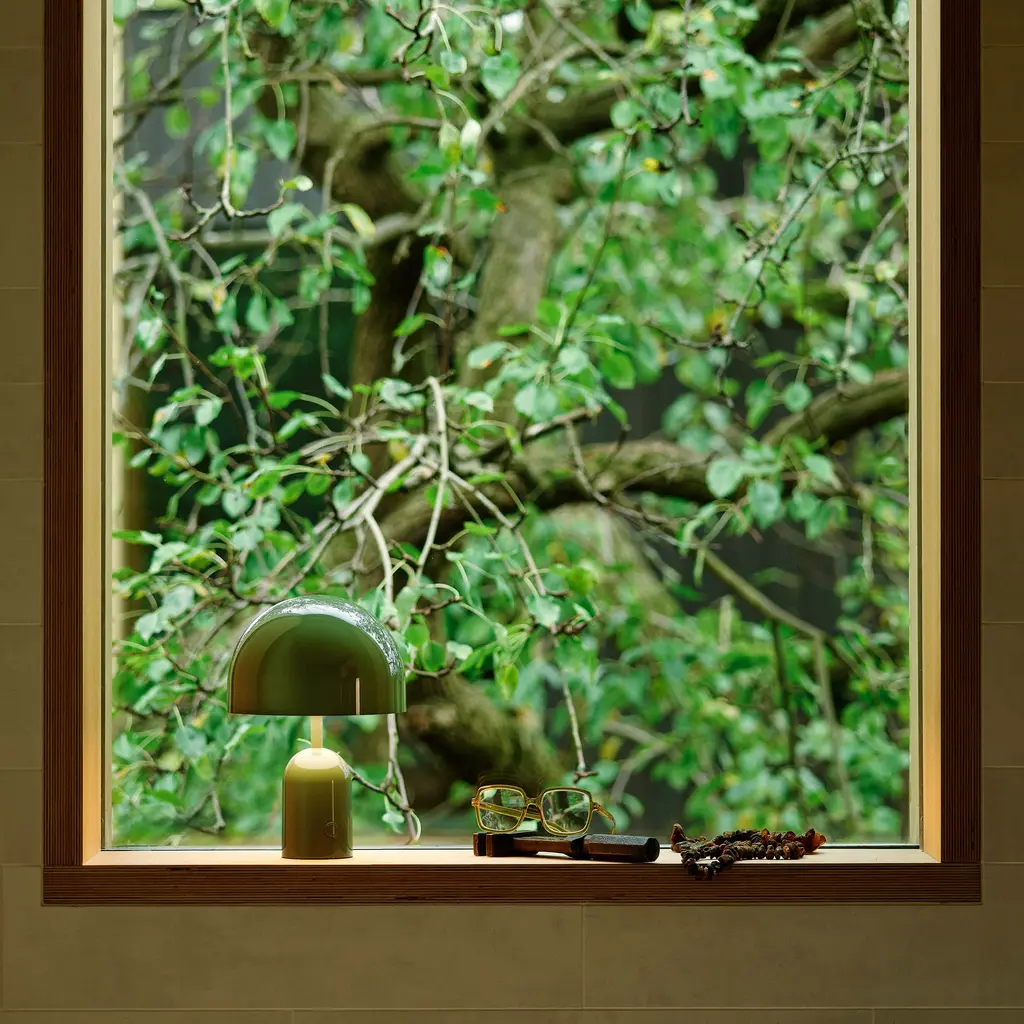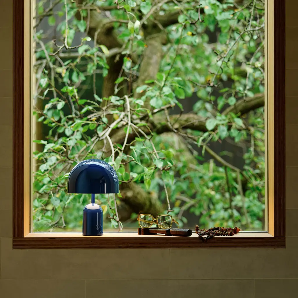 With a gleaming surface that reflects its surroundings, Tom Dixon’s dome-shaded design with its concealed diffuser goes anywhere in this LED-powered portable spin-off. Offering up to 9 hours of soft illumination per battery charge, Bell traverses indoor rooms and outside spaces with ease, its striking contours formed from pressed steel and then plated in a choice of hyper-polished surfaces.