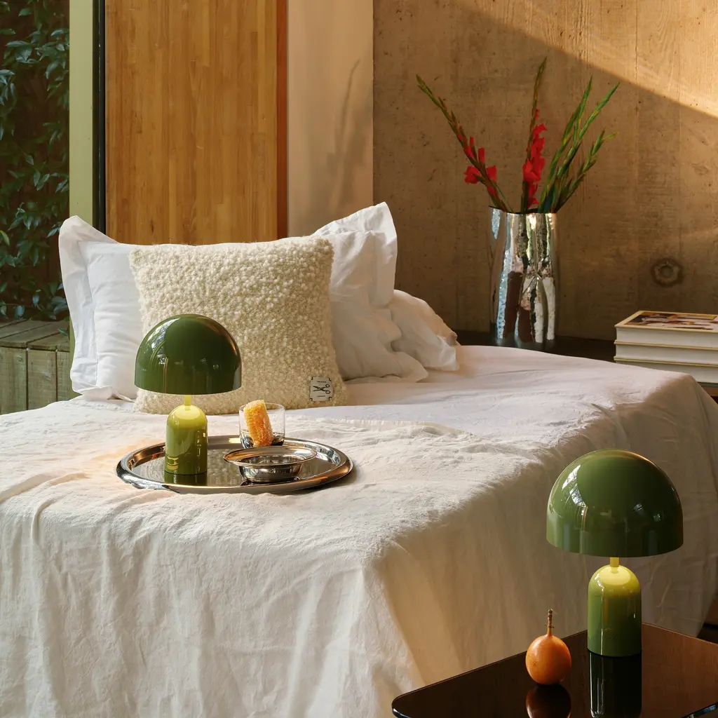 With a gleaming surface that reflects its surroundings, Tom Dixon’s dome-shaded design with its concealed diffuser goes anywhere in this LED-powered portable spin-off. Offering up to 9 hours of soft illumination per battery charge, Bell traverses indoor rooms and outside spaces with ease, its striking contours formed from pressed steel and then plated in a choice of hyper-polished surfaces.