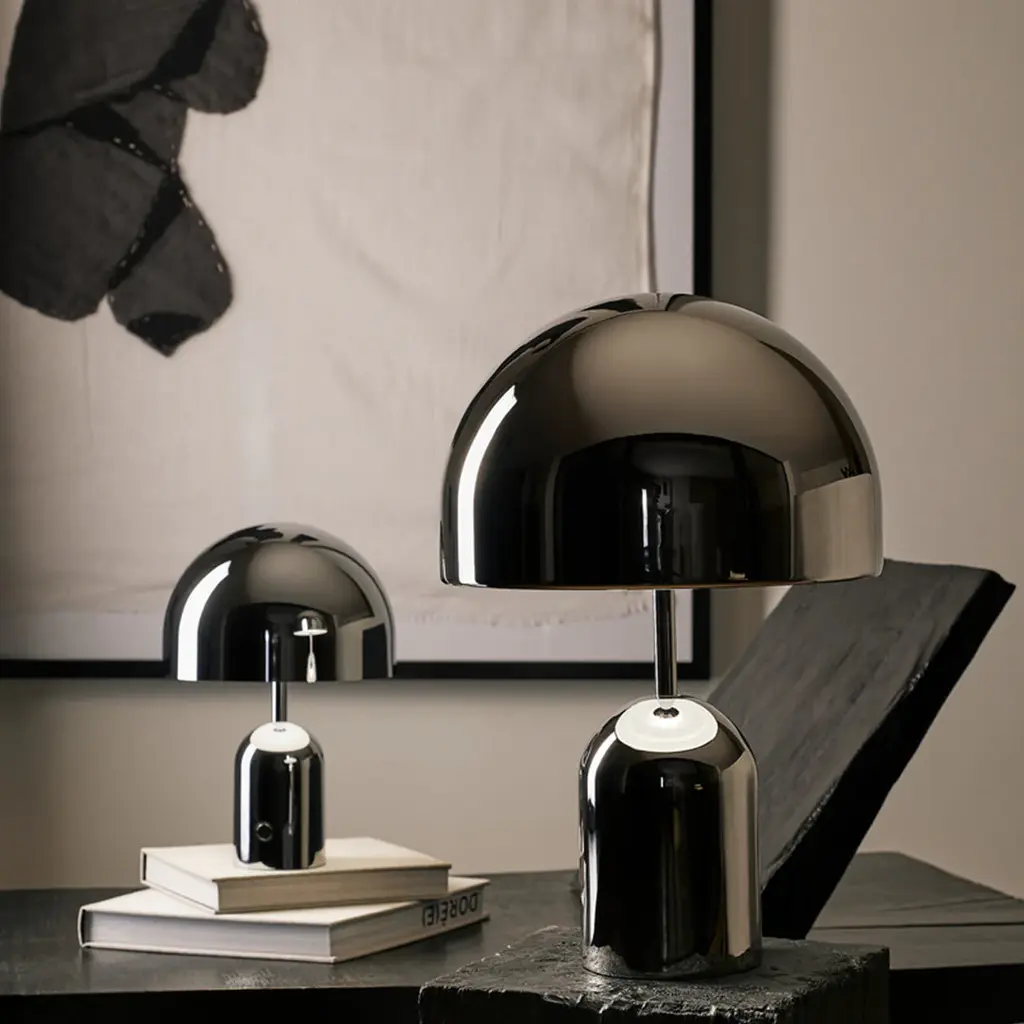 Taking its name from a classic dome shape, Bell is an exercise in reductionism. The hyper-polished surface allows Bell to take on the tone and characteristics of its surroundings while a concealed diffuser produces its soft lighting. Bell Portable LED offers up to 9 hours of battery life.