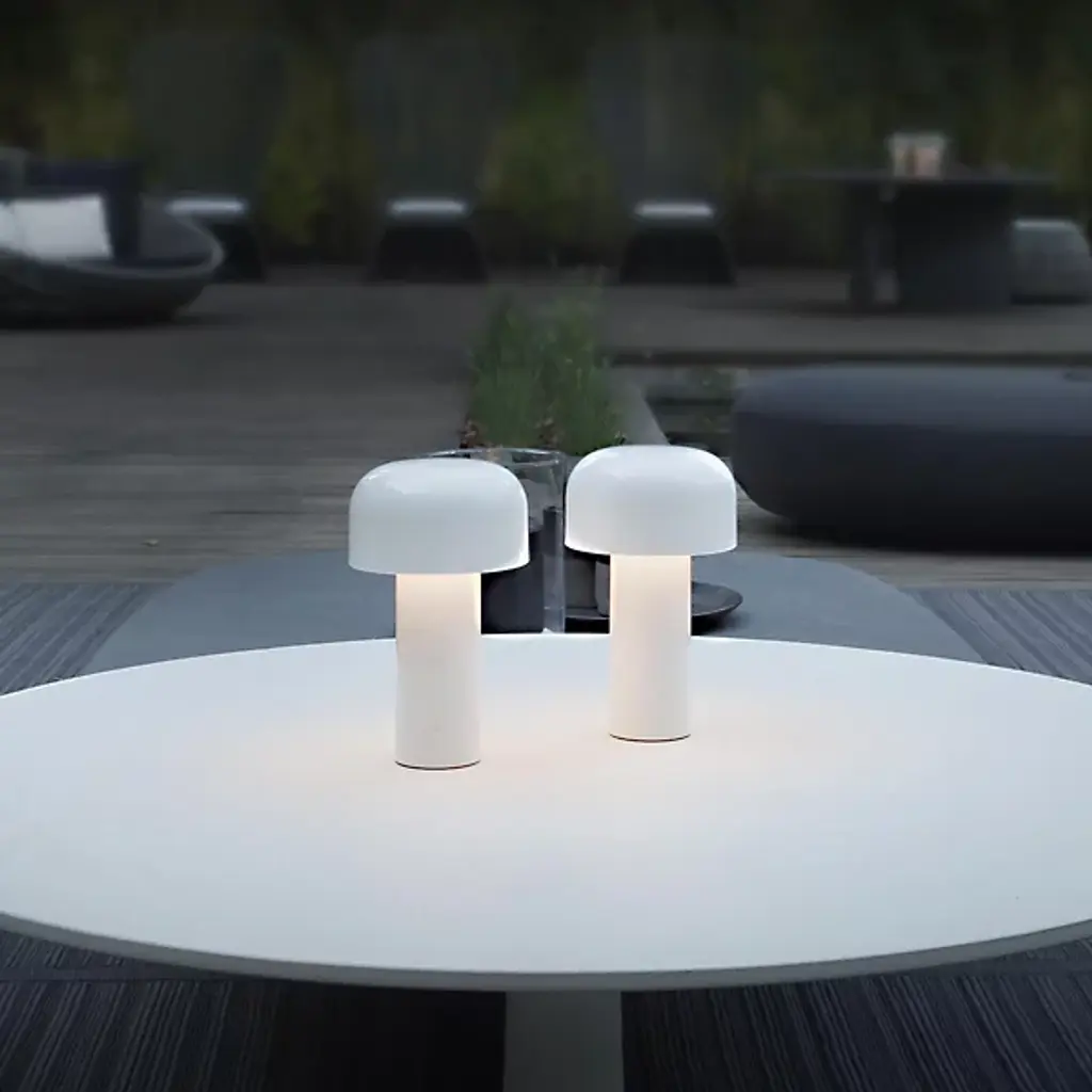 The Bellhop Rechargeable LED Table Lamp from FLOS originated from Edward Barber and Jay Osgerby's 2018 commission for the London Design Museum. The designers created this piece to address the need for portable museum lighting that maintained refined aesthetics. Their approach centered on the classic bell silhouette, reimagined through modern materials and rechargeable technology. Winner of the 2019 LIT Design Awards, the lamp features glossy polycarbonate construction with opaline injection-molded diffuser, offering 24-hour battery life and four-step dimming via simple push-button control.