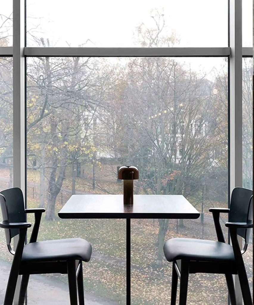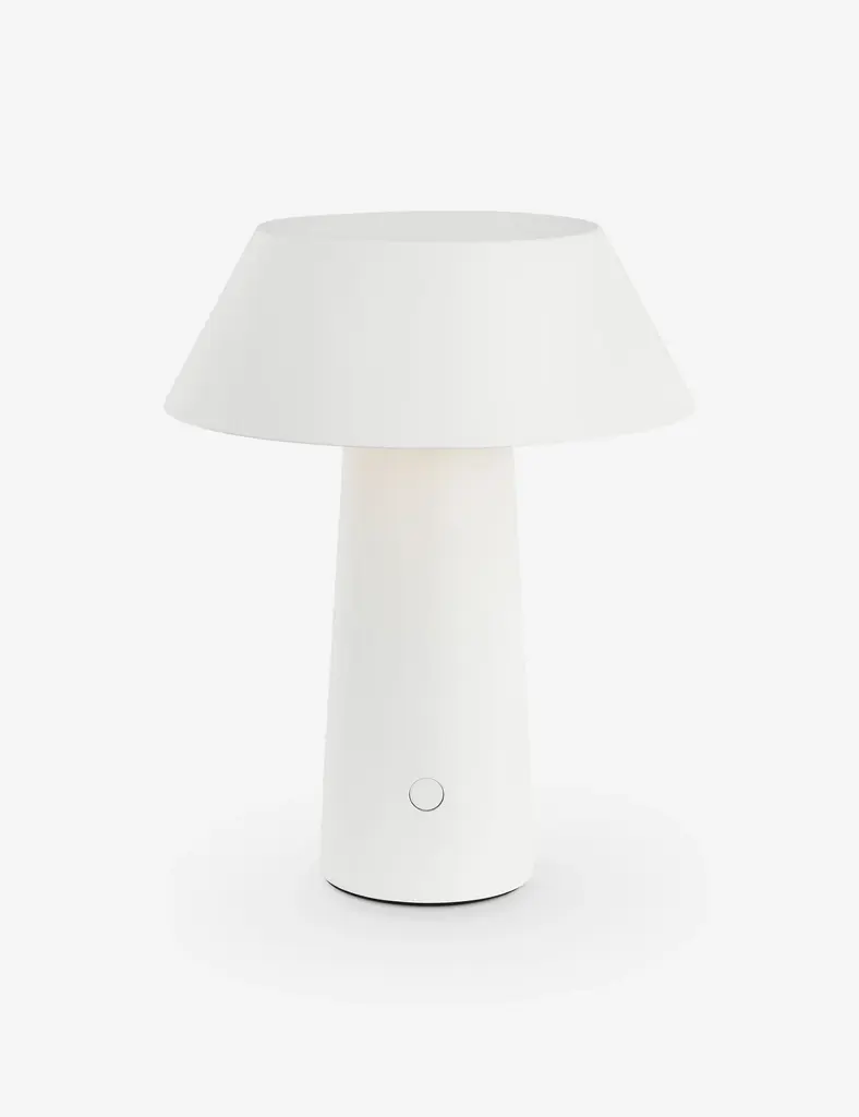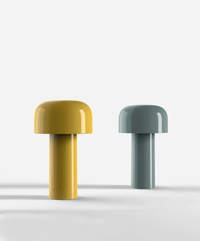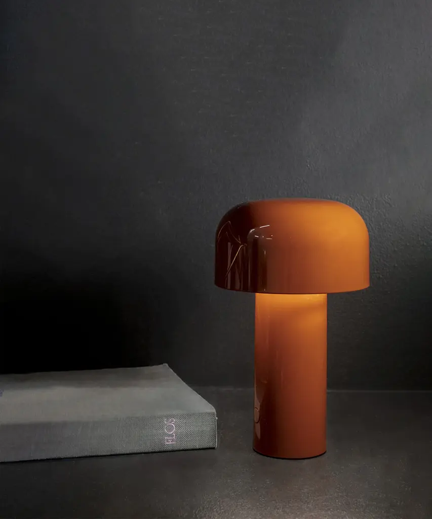 Portable, rechargeable, and wireless, Bellhop is a sleek modern LED tabletop lamp. Originally designed by renowned designers Edward Barber and Jay Osgerby for the London Design Museum. Made for the twenty-first century, Bellhop charges via a micro USB-C and holds a charge for up to 24 hours. Portable and elegant, Bellhop functions like a modern-day candle by providing a soft atmospheric pool of light. British designers Edward Barber and Jay Osgerby pay homage to the hatted hotel porter, where it gets its name from. Bellhop introduced two new colors in 2020: Grey Blue and Yellow to give a fresh touch and bring warm light into modern interiors. Available in 6 finishes: Brown, Burnt Orange, Grey, Grey Blue, White, and Yellow. Features: Push-button switch positioned on the base provides the 4-step dimmer function. Battery status indicator positioned under the base. USB-C charging cable included. USB battery charging on the plug with universal plugs. Remains charged up to 24 hours after fully charging the battery. The inspiration behind the design: Designed by Edward Barber and Jay Osgerby, Bellhop is a portable tabletop lamp that evokes the spirit of a modern-day candle. The beloved, cordless tabletop can be carried around anywhere, bringing light where it is needed the most, casting a pool of direct light wherever it goes. "The Bellhop began when we designed a table lamp for the new London Design Museum. The tabletop Bellhop gives the user ultimate flexibility as a portable lamp. Bellhop casts an atmospheric pool of light and the portable version is like a modern-day candle." This authentic design is produced in Italy exclusively by Flos.