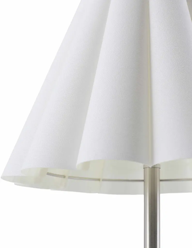 Collection: Bellinzona Colors: Metallic - Nickel, Beige, White, Translucent Material: Body: Iron,Base: Iron,Shade (Outside): Linen,Shade (Inside): Polystyrene Styles: Contemporary Made In: China Lighting Type: Accent Table Lighting Base: Iron Base Color: Metallic - Nickel Shade Material: Linen, Polystyrene Shade Color: White, Beige Cord Length: 6' Switch Type: On/Off Number of Bulbs: 1 Socket Type: E-26 Bulb Wattage: 60W