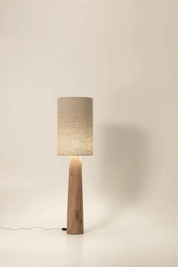 Bengra FL4XL lamp by Jeroen De RuddereDimensions: D 40 x H 157 cmCord Lenght: 200 cmDimmable: YesMaterials: Oak Brutal nature and textile.All pieces are CE certified.Each lamp is handmade so the measurements may differ minimally.