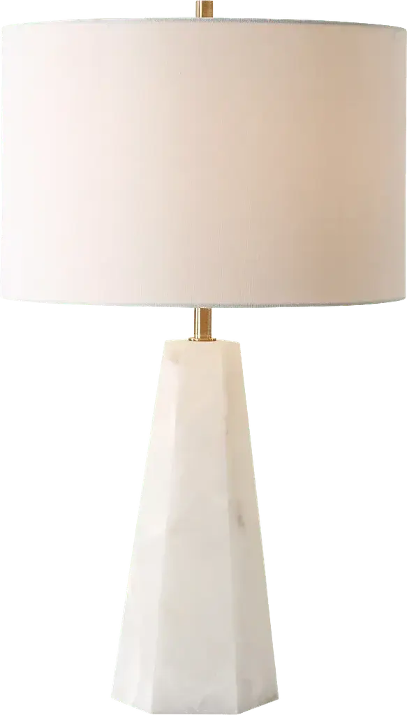 The Benicia Table Lamp from Hudson Valley Lighting is where beauty meets transitional elegance. This exquisite lamp stands with a statuesque presence, featuring a pyramid-shaped base crafted from honed arabescato corchia marble. The enduring sense of permanence conveyed by the marble base contrasts harmoniously with the soft white linen shade, creating a balance of strength and grace. A slender neck adds refinement to the design, while an LED illuminates your surroundings.