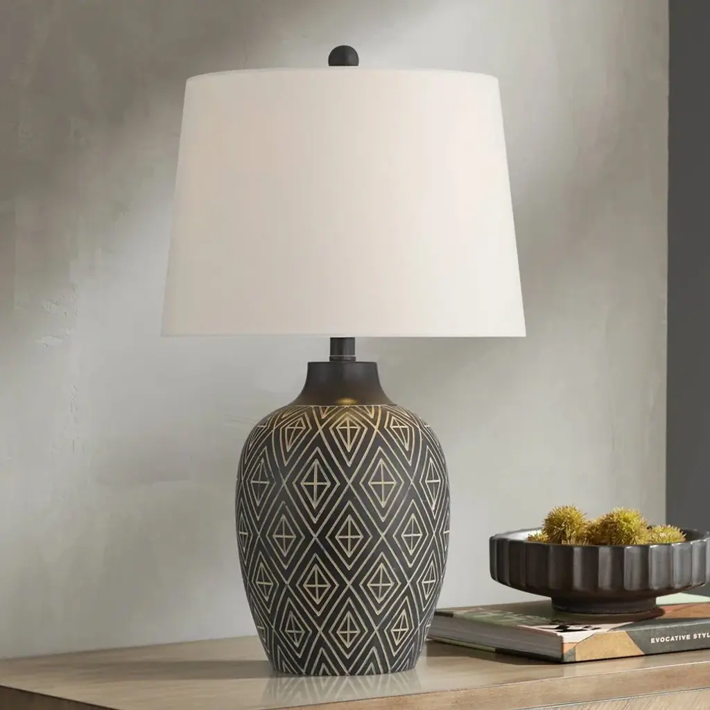 Benito 23 1/2" High Diamond Pattern Jar Table Lamp - 14" X 23.5" - 14" X 23.5" - Black
