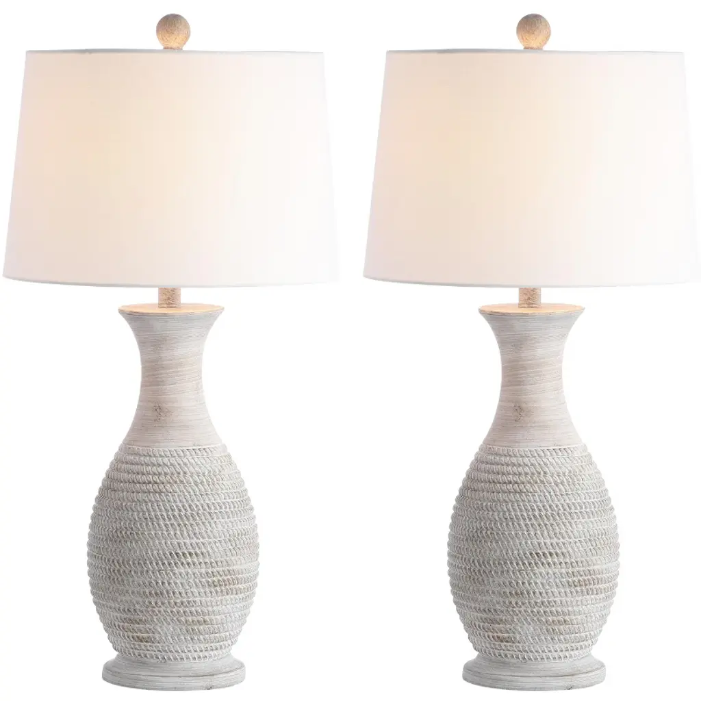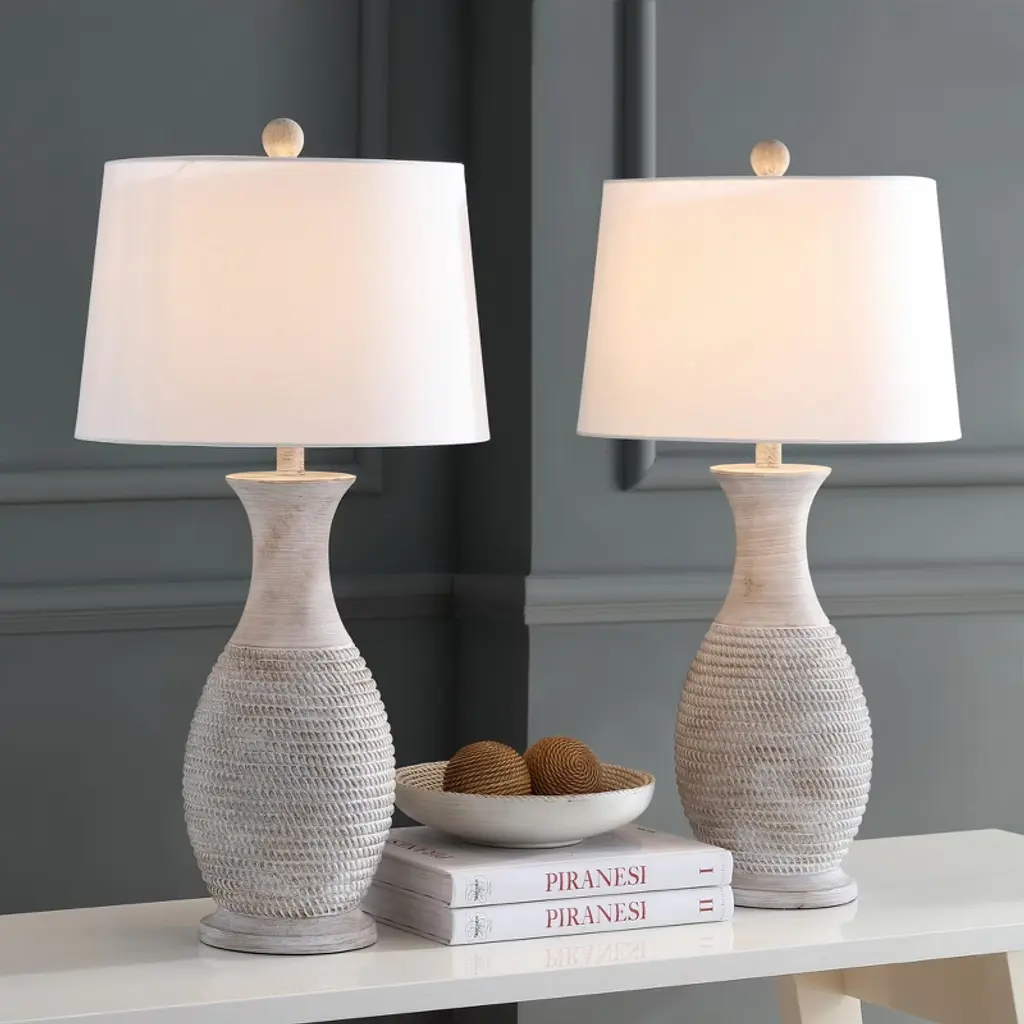 Illuminate your space with the Bentlee 30 inch grey polyresin table lamp set. Crafted with a modern and elegant design, this pair of lamps brings a touch of sophistication to any room. The smooth grey finish complements various decor styles, making it a versatile addition to your living room, bedroom, or office. Each lamp stands proud at 30 inches, providing ample lighting for reading or working while adding a cozy ambiance to your surroundings. The polyresin construction ensures a lightweight yet sturdy build, offering both aesthetic appeal and functionality. Elevate your home decor with the Bentlee table lamp set and create a warm, inviting atmosphere that enhances any setting.
