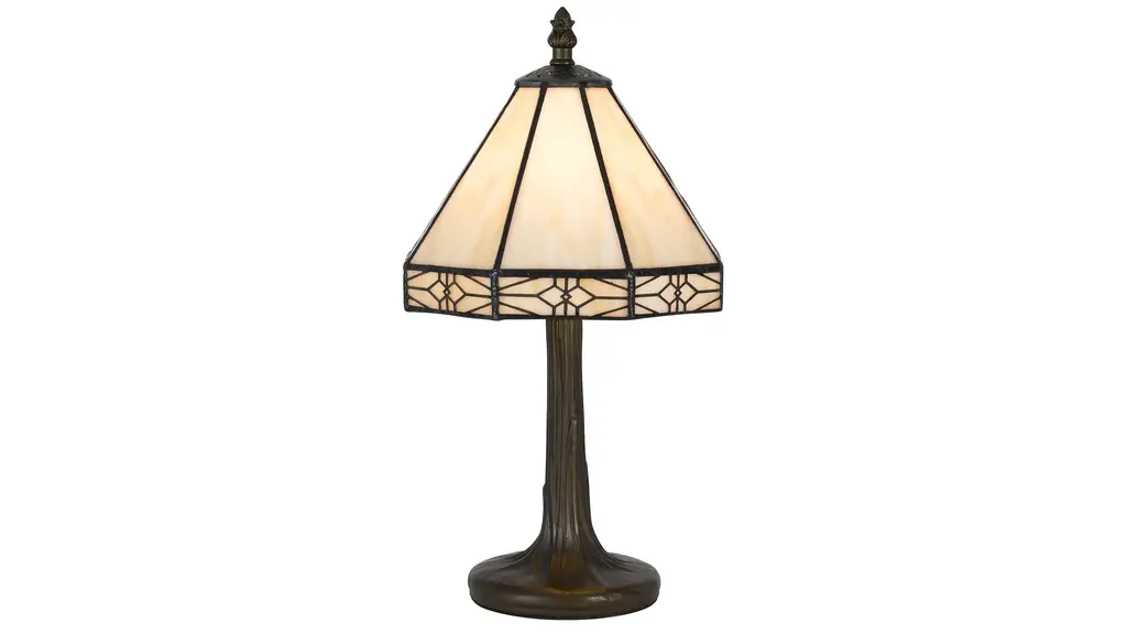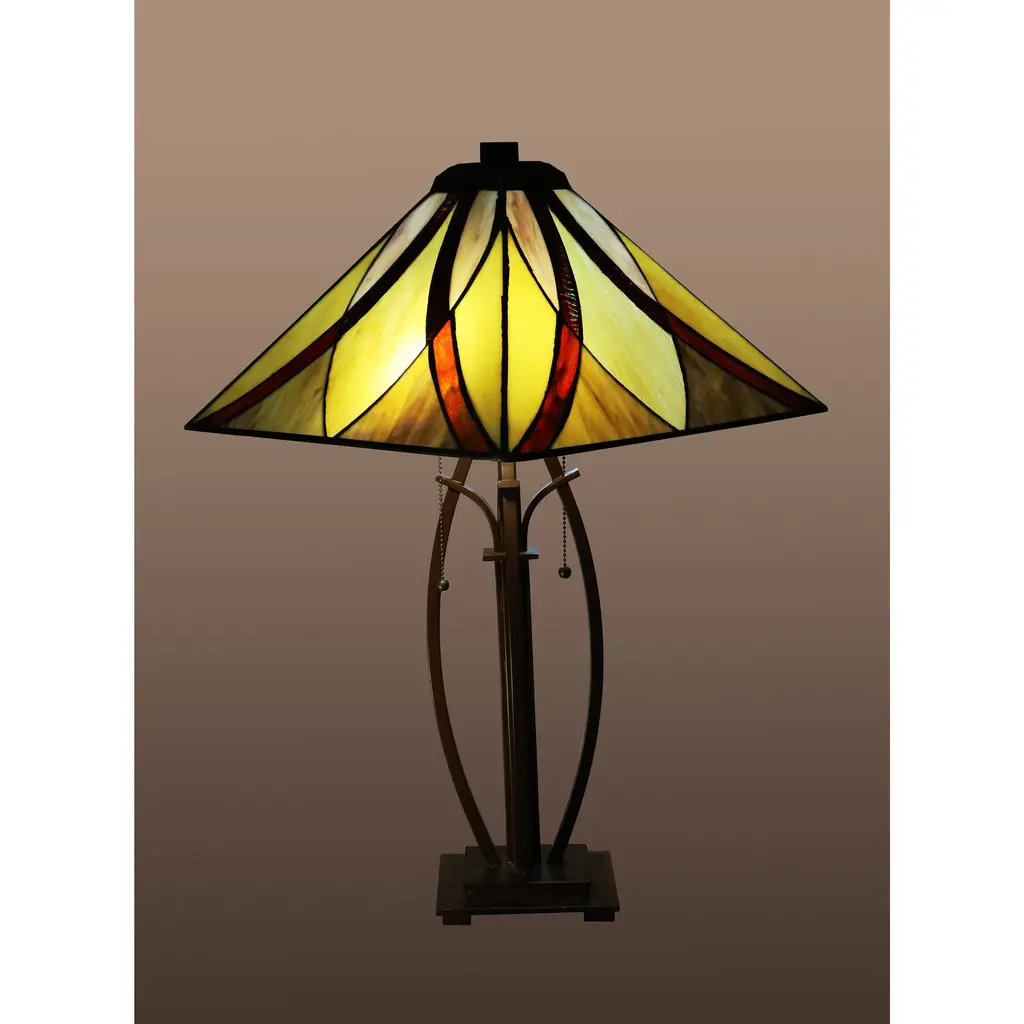 Glow your home with multicolored lights by lighting up this amazing and beautiful tiffany floor lamp. It features a pillar like zinc body, incorporating a conical tiffany shade in a beige finish with an on off switch for control. It is supported by a circular base, providing stability and durability.