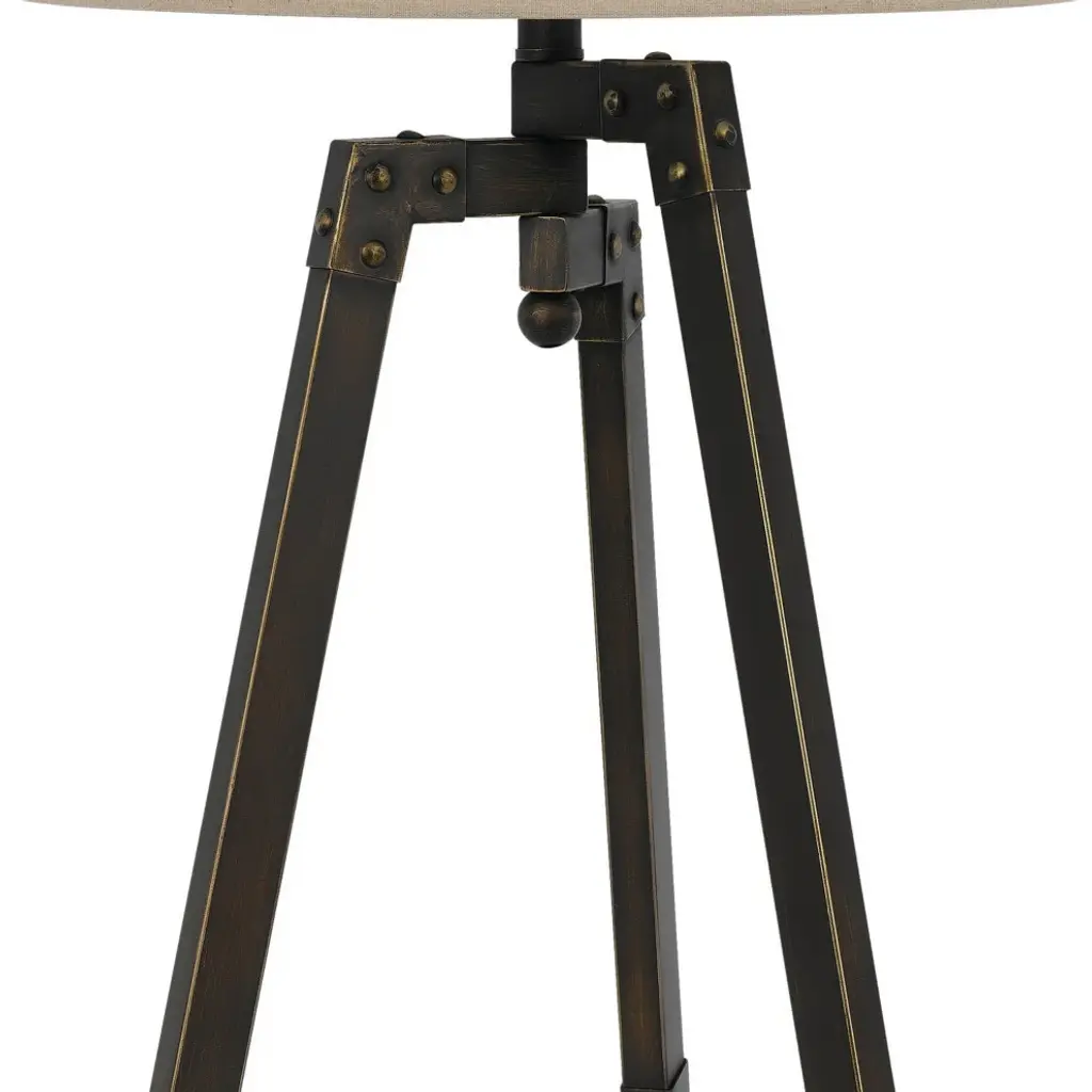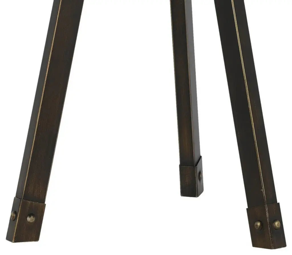Let the lights of hope and happiness bless your home by bringing in this amazing table lamp. It features a tripod style body that also serves at the base, showcasing metal brackets with rivets. It incorporates a fabric drum shade and a 3 way switch for optimal light intensity control.