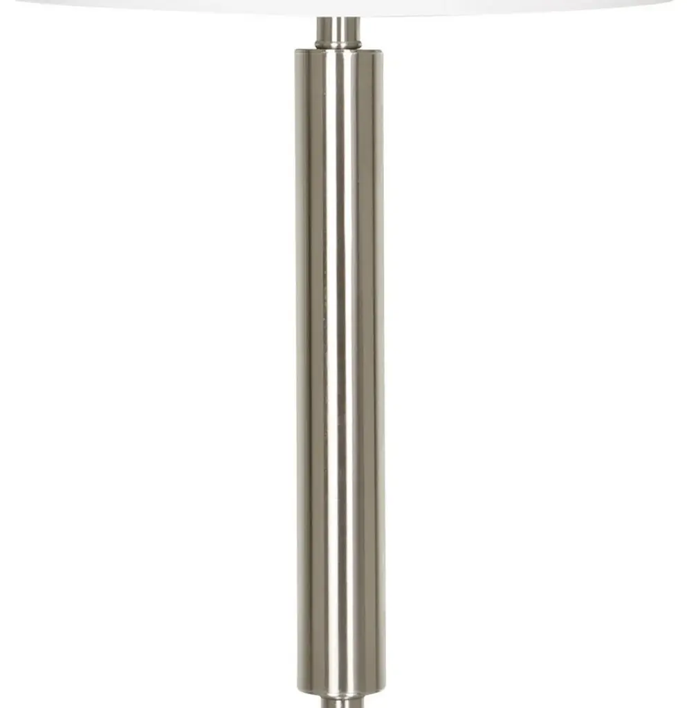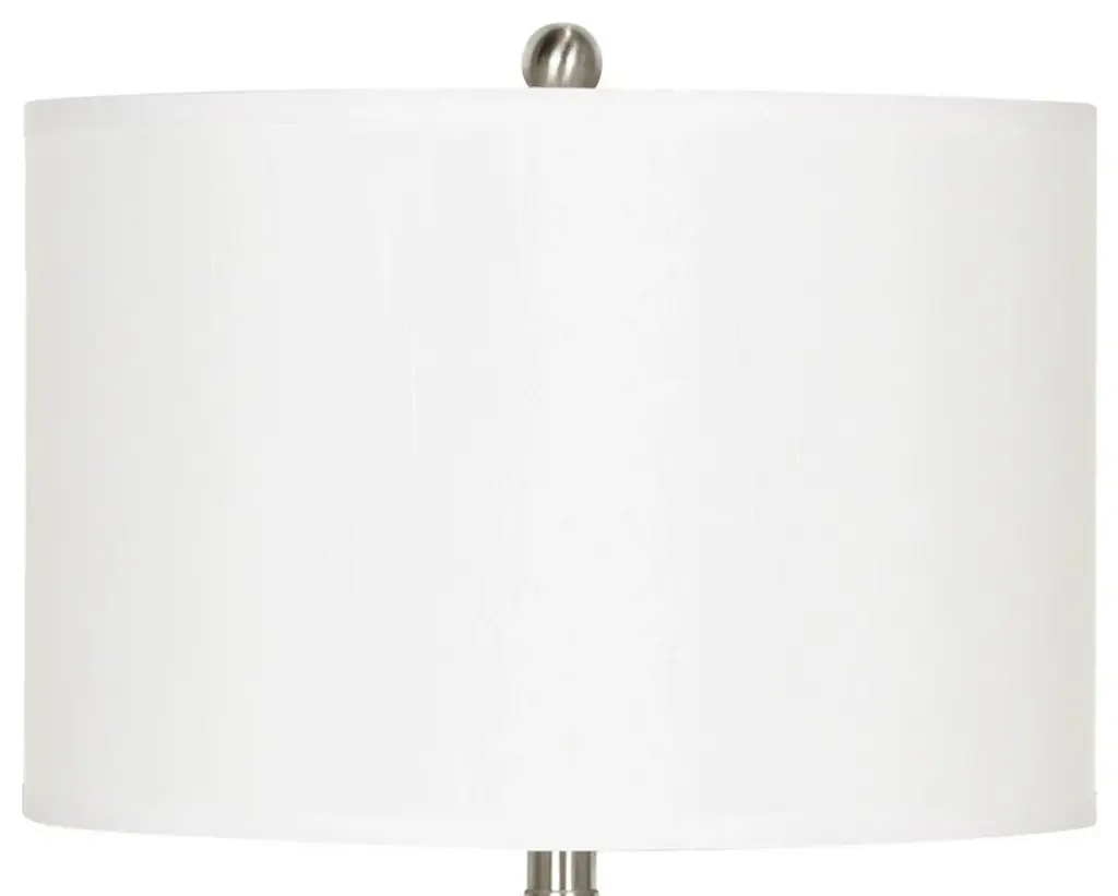 Benzara Bm233289 Metal Table Lamp With Fabric Drum Shade, White And Silver