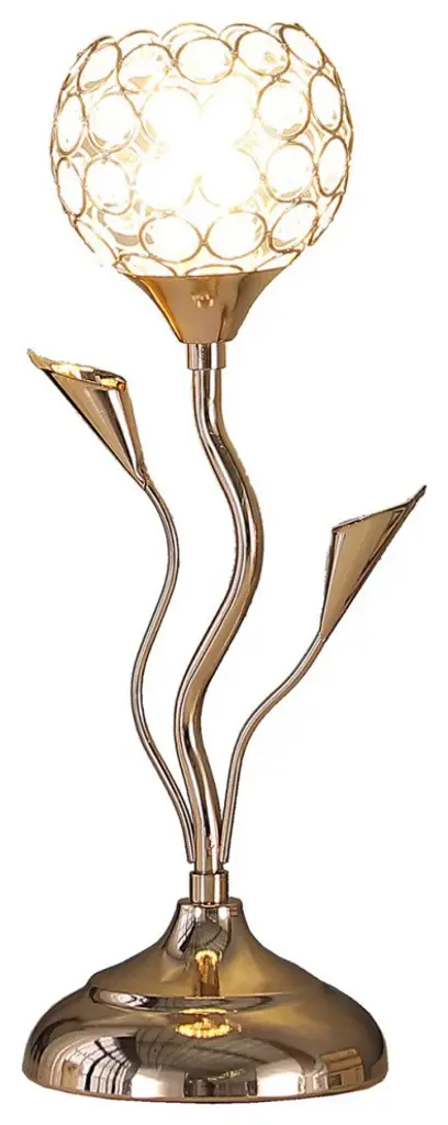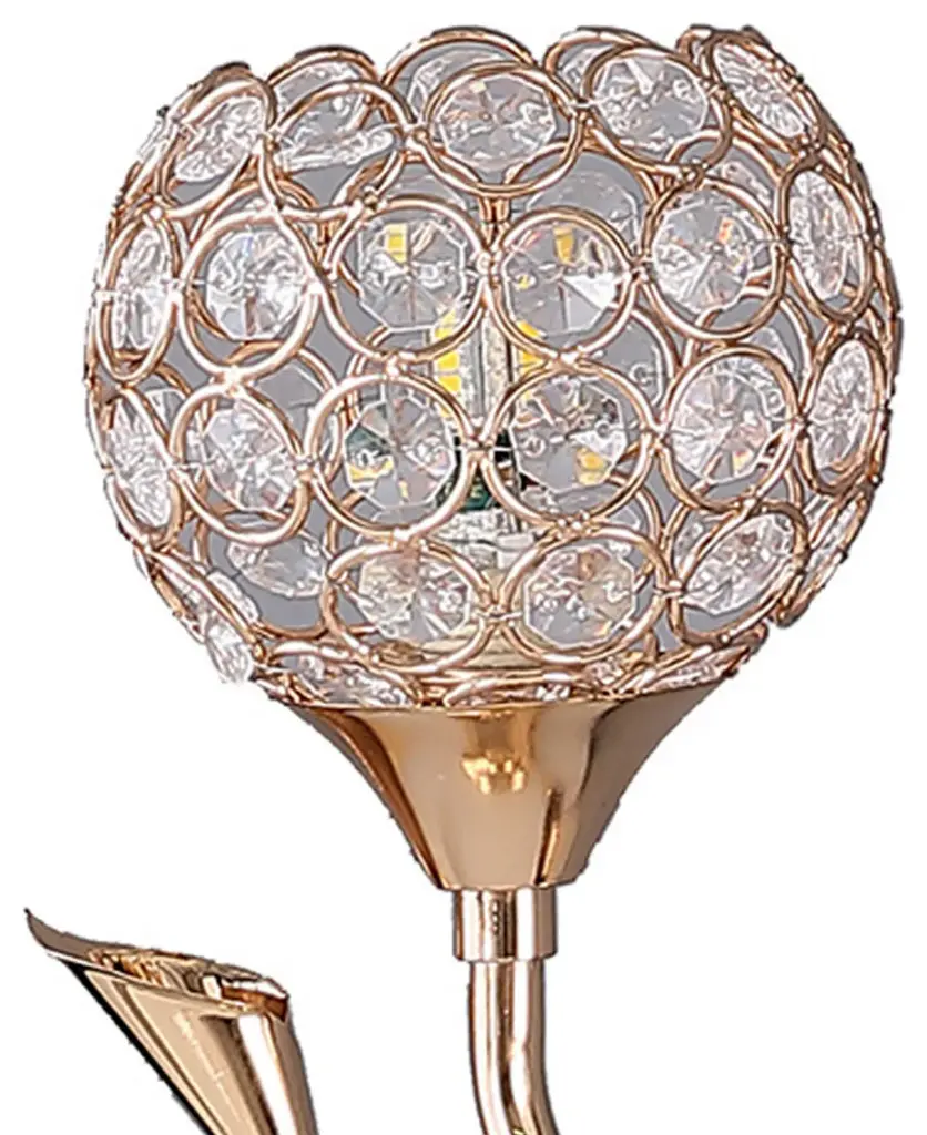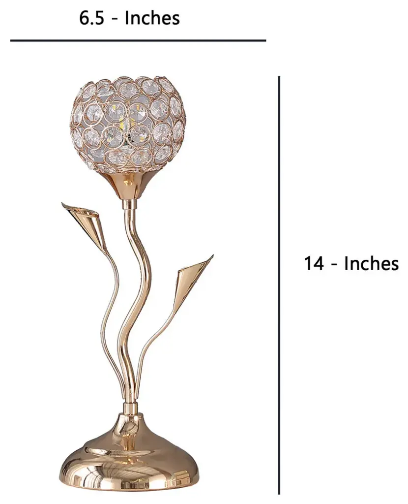 This beautiful table lamp very elegantly replicates the design of a floral tree. With 1 upright shade sprouting out of 1 single stem, it has been embellished with acrylic crystal accents. It has sleek floral buds on each side which compliments beautifully. The rose gold finish beautifully compliments the entire piece.