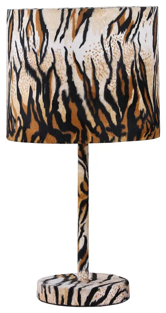 An edgy and classy looking table lamp is always desired by everyone. This table lamp is wrapped in faux suede fabric upholstery which carefully depicts the animal print pattern. Resting atop round shaped base, it has circular drum shade which completes the look and also makes it enticing.