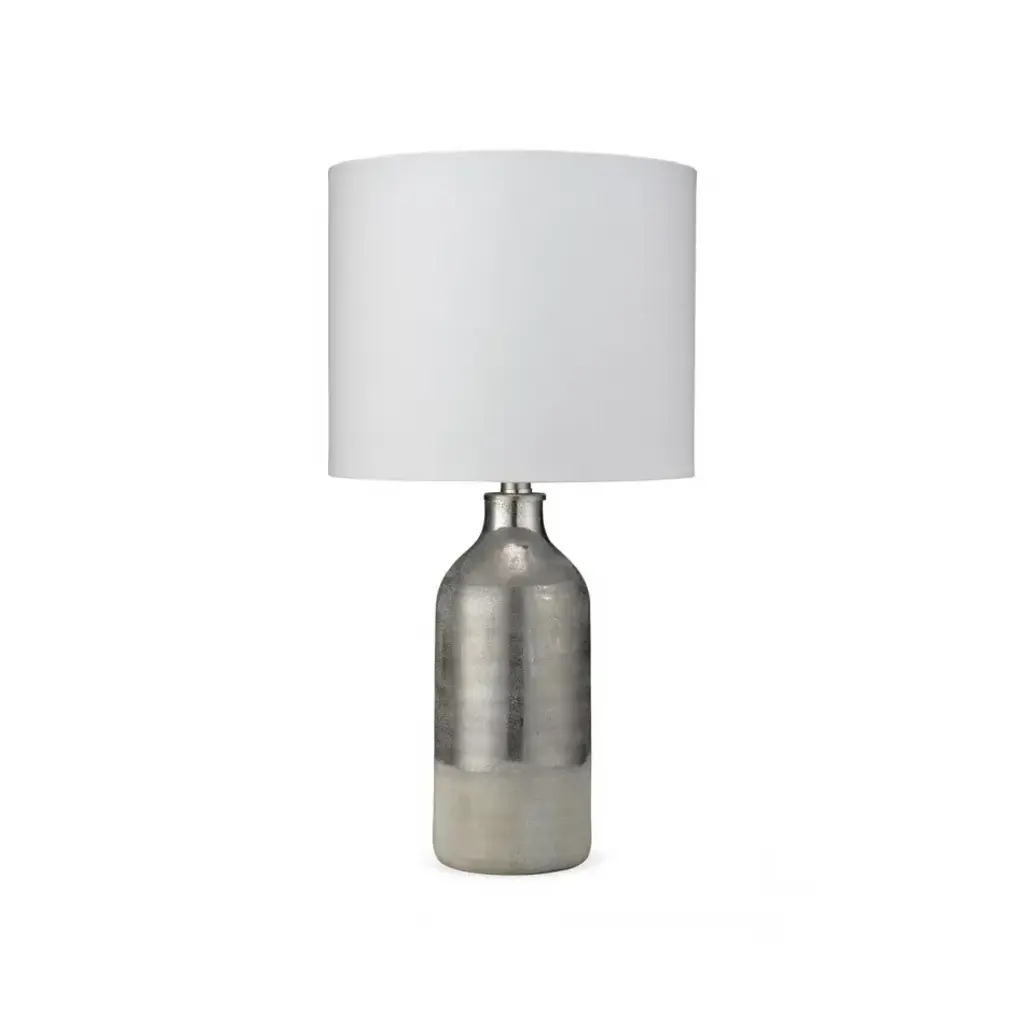 Add minimalism to your home decor with this contemporary style Table Lamp. Incorporating a white semi drum shade, the table comes with a bottle shaped antique brass metal base that offers style and stability to the lamp. It brings a warm touch to your existing furnishing and upgrades any space with its captivating appeal.