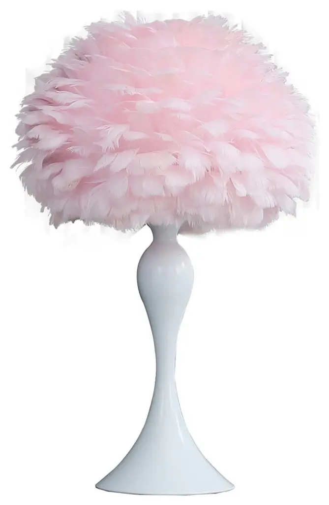 Benzara Bm279099 Metal Glam Feather Table Lamp, Candlestick, 40w, Pink, Red